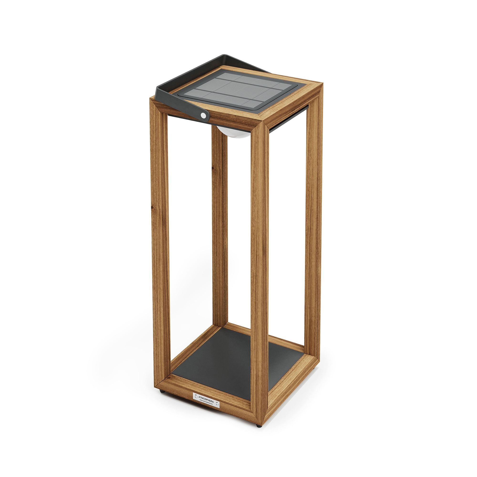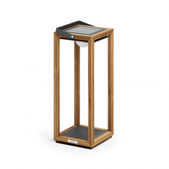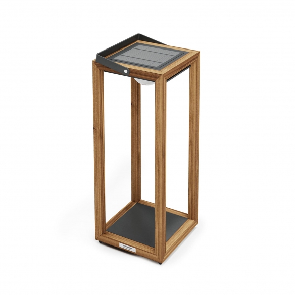 Lanterna da esterno Astro realizzata in teak o alluminio. Disponibile in 4 colori, la lanterna outdoor Astro rappresenta un'aggiunta di puro stile e praticità per qualsiasi spazio aperto, elevando istantaneamente l'atmosfera delle serate trascorse all'aria aperta. Si distingue per il suo design raffinato e lineare, che non solo conferisce un tocco contemporaneo e sofisticato all'ambiente esterno, ma crea anche un’invitante atmosfera di benvenuto, perfetta per ogni occasione. Realizzata con materiali di alta qualità come l’alluminio e il Teak, la Lanterna Astro dimostra un impegno verso la sostenibilità e l’innovazione, offrendo la possibilità di essere ricaricata utilizzando l'energia solare o mediante cavo micro-USB. Questa flessibilità garantisce che la lanterna sia sempre pronta all'uso, rendendola una soluzione d'illuminazione esterna estremamente conveniente e rispettosa dell'ambiente. Offrendo due modalità di accensione, manuale o automatica tramite sensore crepuscolare, la Lanterna Astro si adatta perfettamente alle necessità dell'utente, assicurando luce quando più serve e fornendo un'accoglienza calda e luminosa al calar del sole. Questa feature rende la lanterna incredibilmente pratica, attivandosi automaticamente in base alle condizioni di luce ambientale. Ideale per creare scenari incantevoli nel giardino, sul terrazzo o in qualsiasi spazio esterno, la Lanterna da Esterno Ricaricabile Astro è una scelta privilegiata per chi desidera combinare eleganza, funzionalità e un tocco di magia nell'arredo outdoor. Disegnata da Atmosphera Creative Lab.