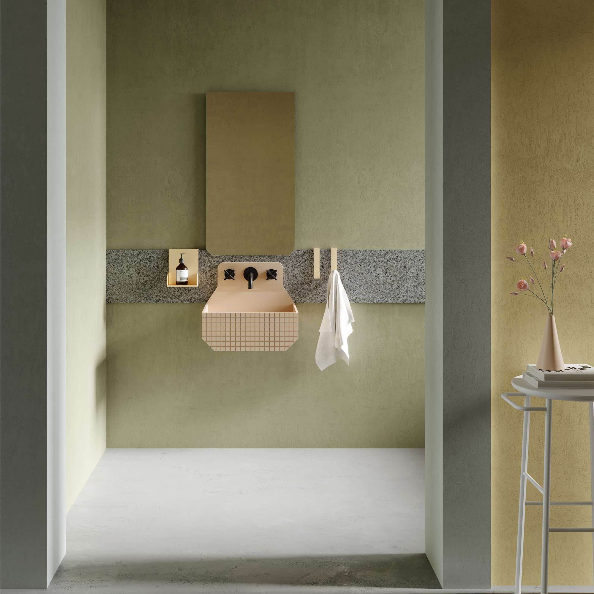 Ex.t Lavabo da parete Frieze One High con texture frontale - Staffa di supporto inclusa