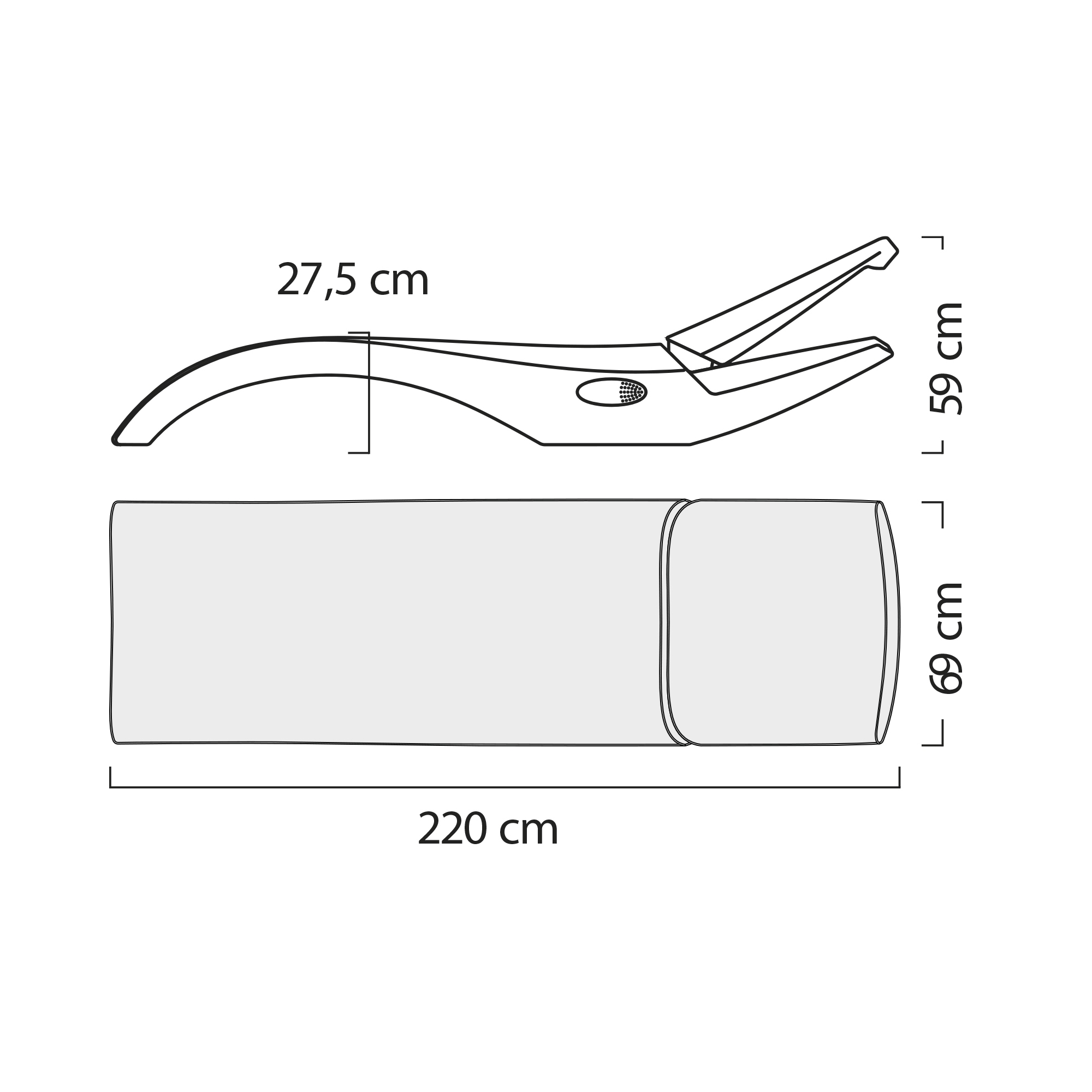 Dimensioni: Altezza 59 cm, Lunghezza 223 cm, Larghezza 69 cm