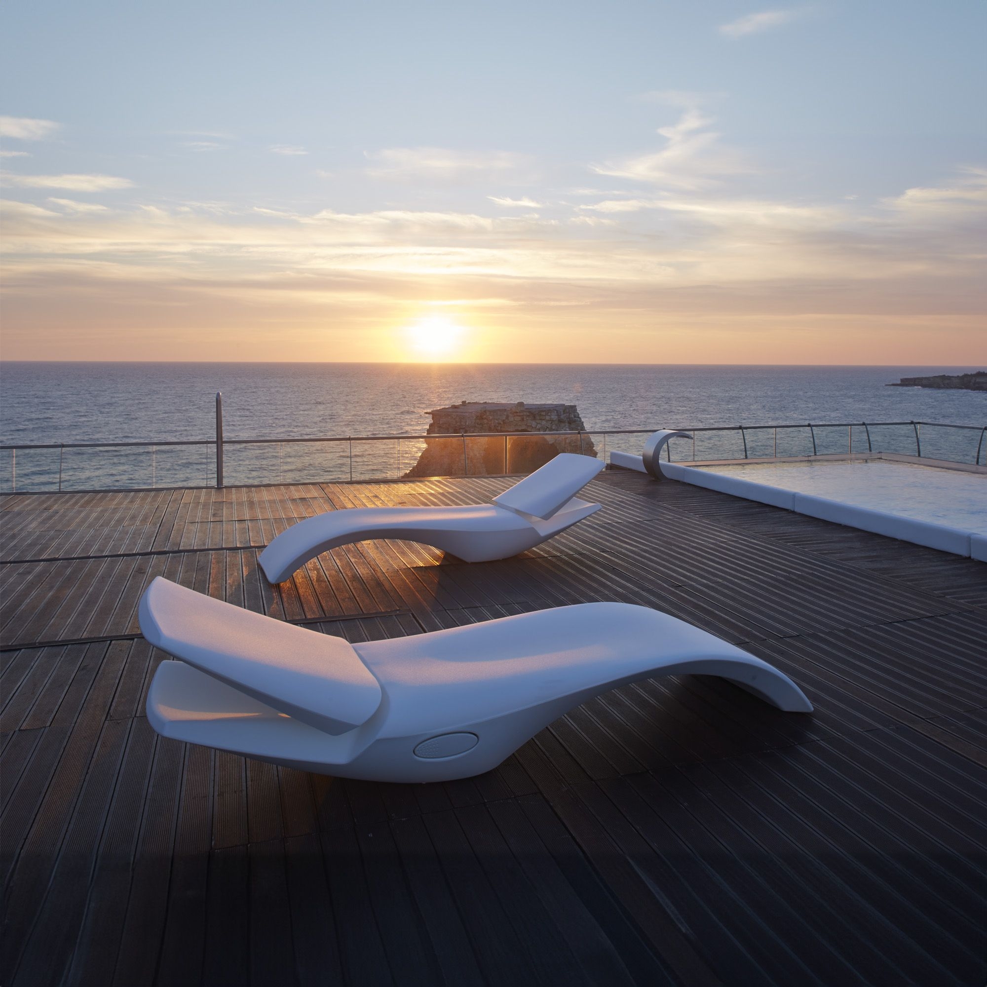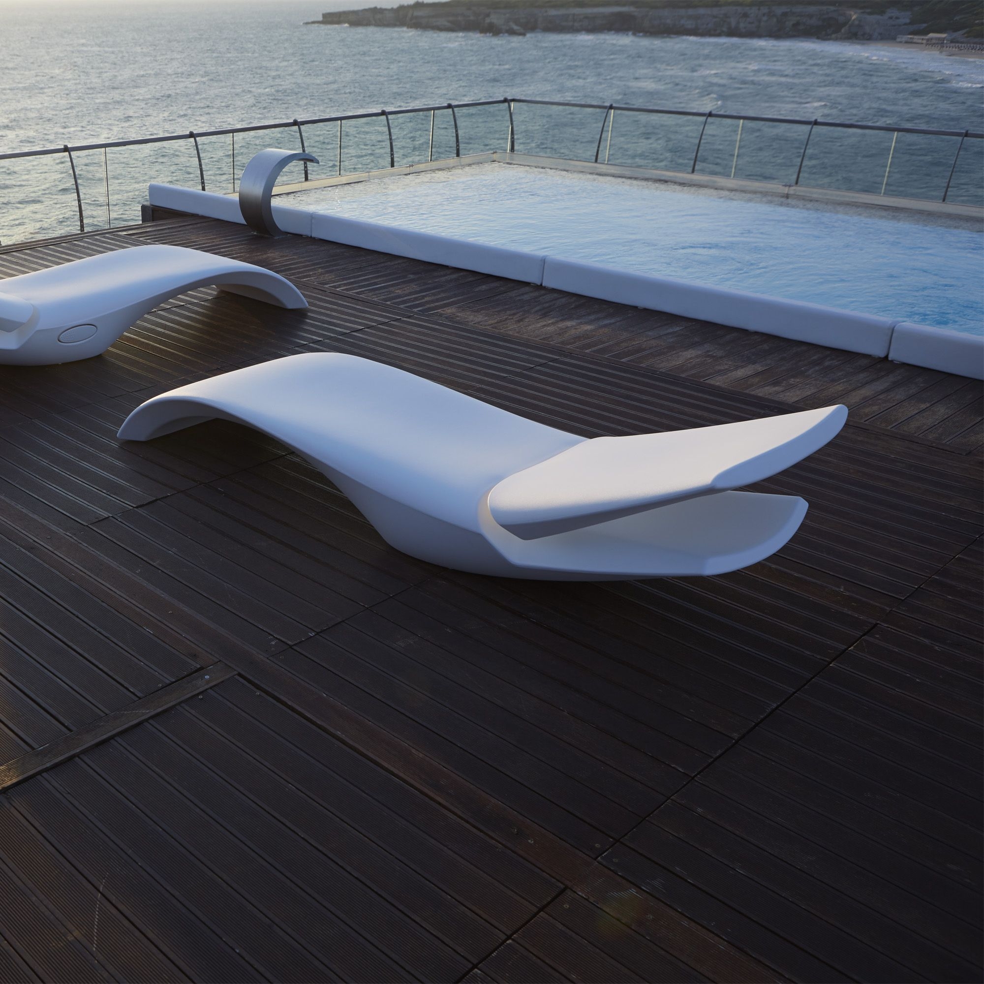 Lettino reclinabile da esterno Zoe realizzato in polietilene robusto (Poleasy). Evoluzione naturale del modello Cloe, Zoe si distingue per uno schienale reclinabile, facilmente azionabile tramite un pulsante, che garantisce un comfort superiore. I dettagli curati in modo eccellente si traducono in un'esperienza di riposo ulteriormente migliorata, mentre il design si integra armoniosamente grazie all'utilizzo di sistemi di regolazione sofisticati. Disegnato da MoreDesign per My Your.