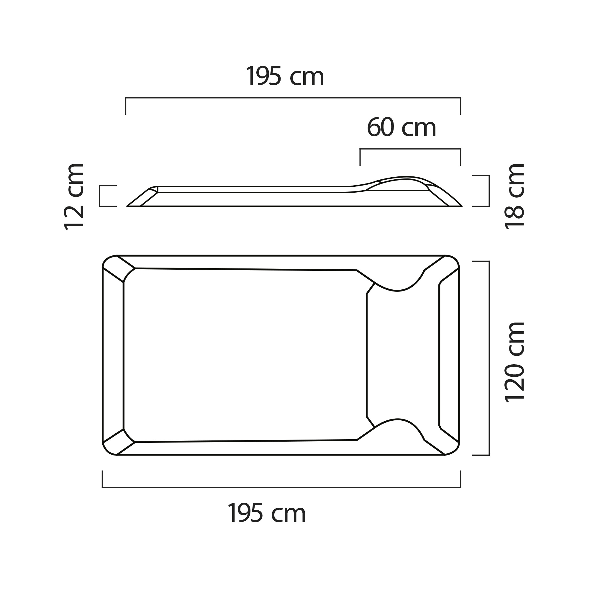 Dimensioni: Lunghezza 195 cm, Profondità 125 cm
