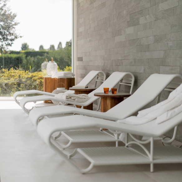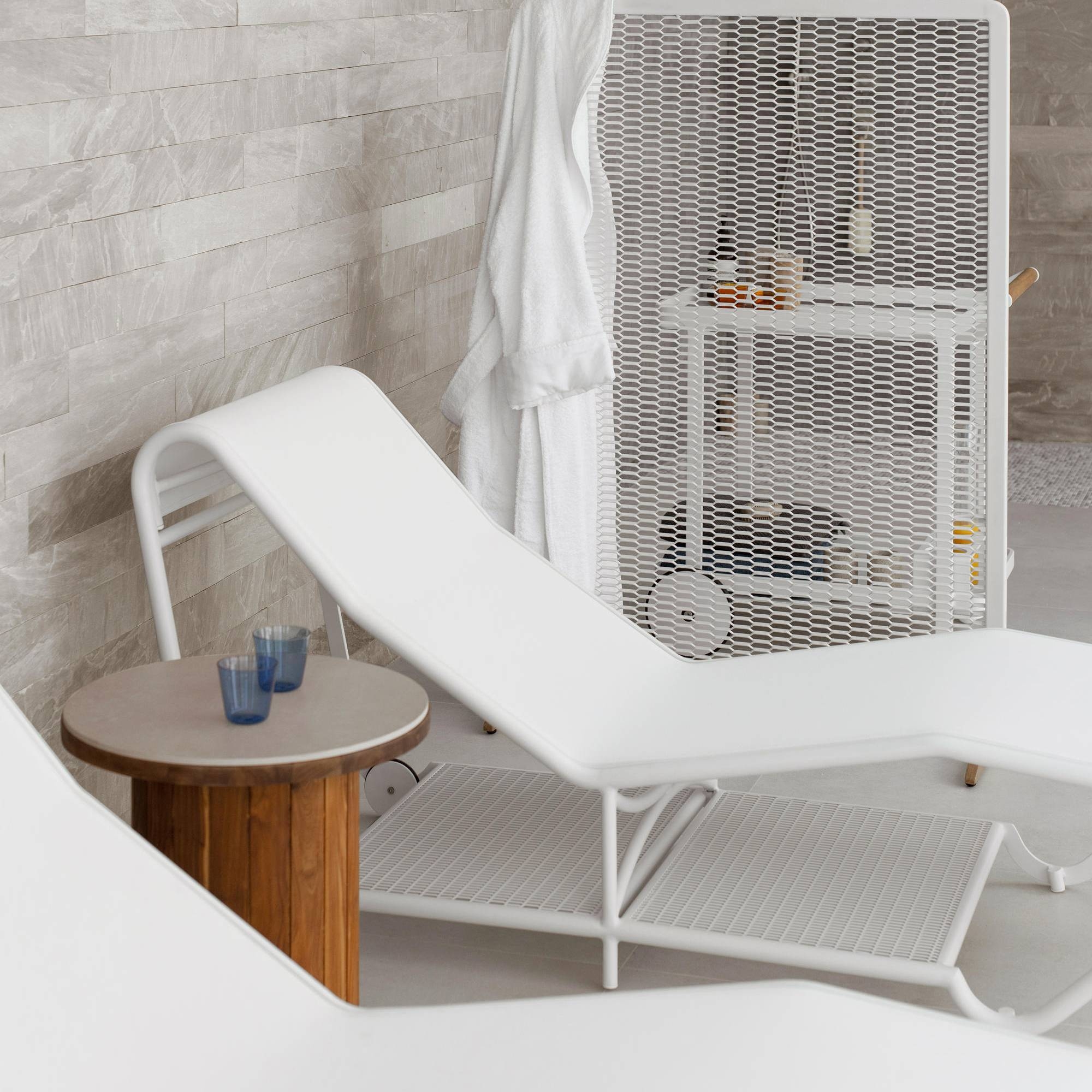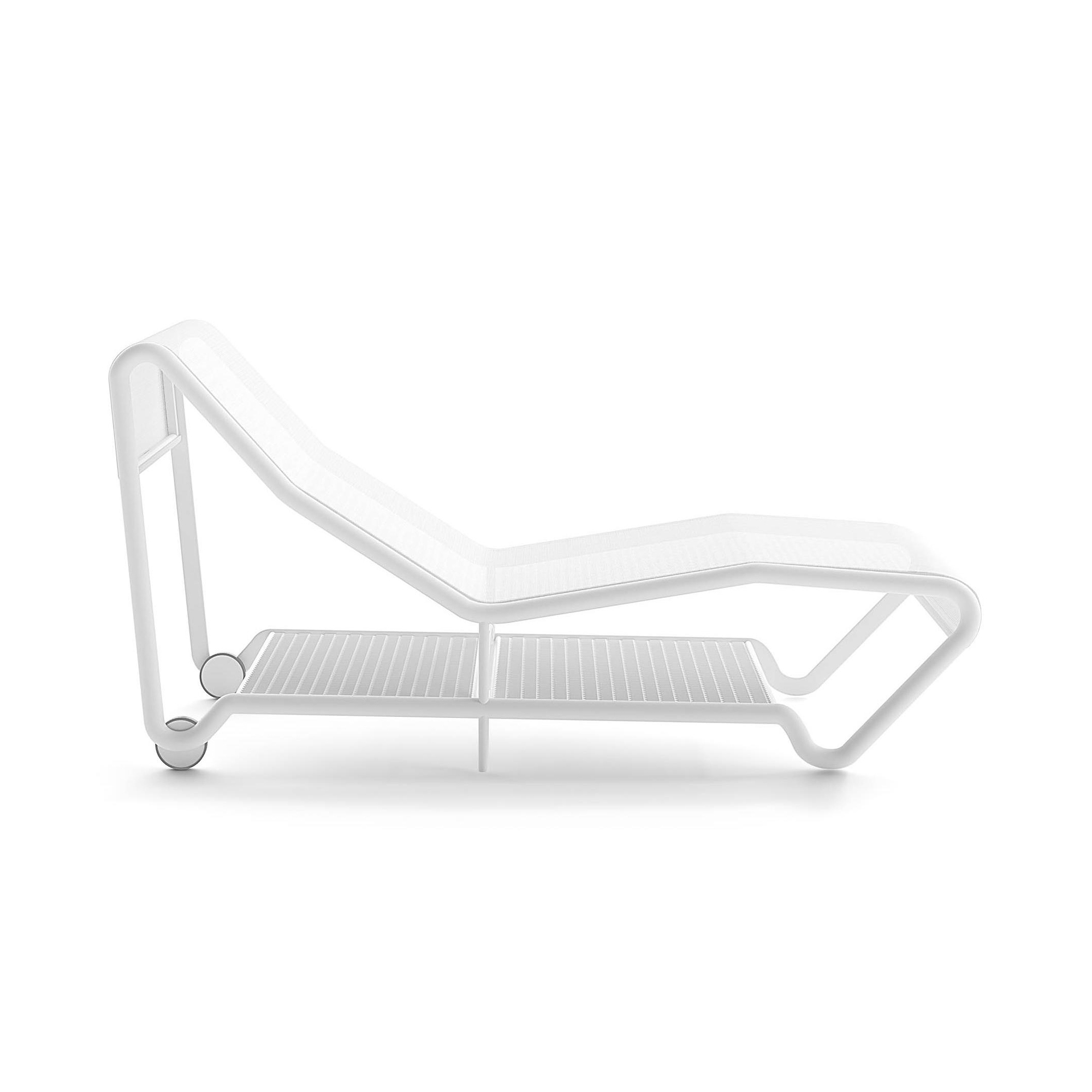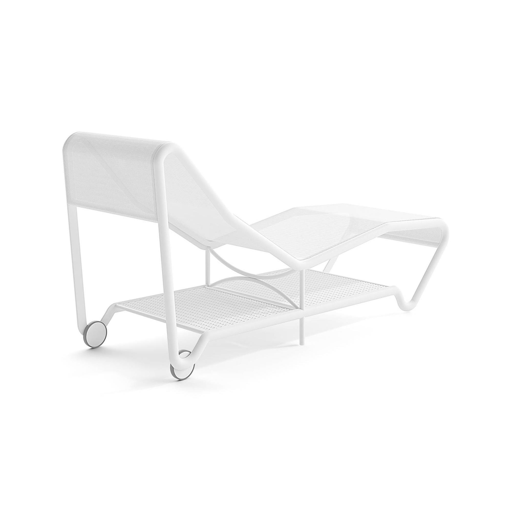 Lettino da esterno Wind realizzato con struttura in alluminio e seduta in textilene. Disponibile in 2 colori, il lettino outdoor Wind combina funzionalità e stile, ideale per arredare spazi esterni come giardini, terrazze o piscine. La struttura è realizzata in alluminio verniciato epossidico, disponibile nei colori bianco o grafite, che garantisce resistenza e durabilità anche nei confronti degli agenti atmosferici. La seduta e la schiena sono fatte in tessuto tecnico microforato termosaldato Textilene, che offre comfort e resistenza, disponibile anch'esso nei colori bianco o nero. Il design del lettino Wind include una seduta ergonomica che assicura il massimo comfort durante il relax all'aperto. Inoltre, è dotato di due ruote che facilitano lo spostamento, rendendo questo lettino versatile e pratico da maneggiare. Perfetto per chi cerca un'elegante soluzione per il proprio spazio all'aperto, il lettino Wind è il connubio ideale di eleganza, comfort e praticità, progettato per garantire la migliore esperienza di relax all’aria aperta. Disegnato da Atmosphera Creative Lab.