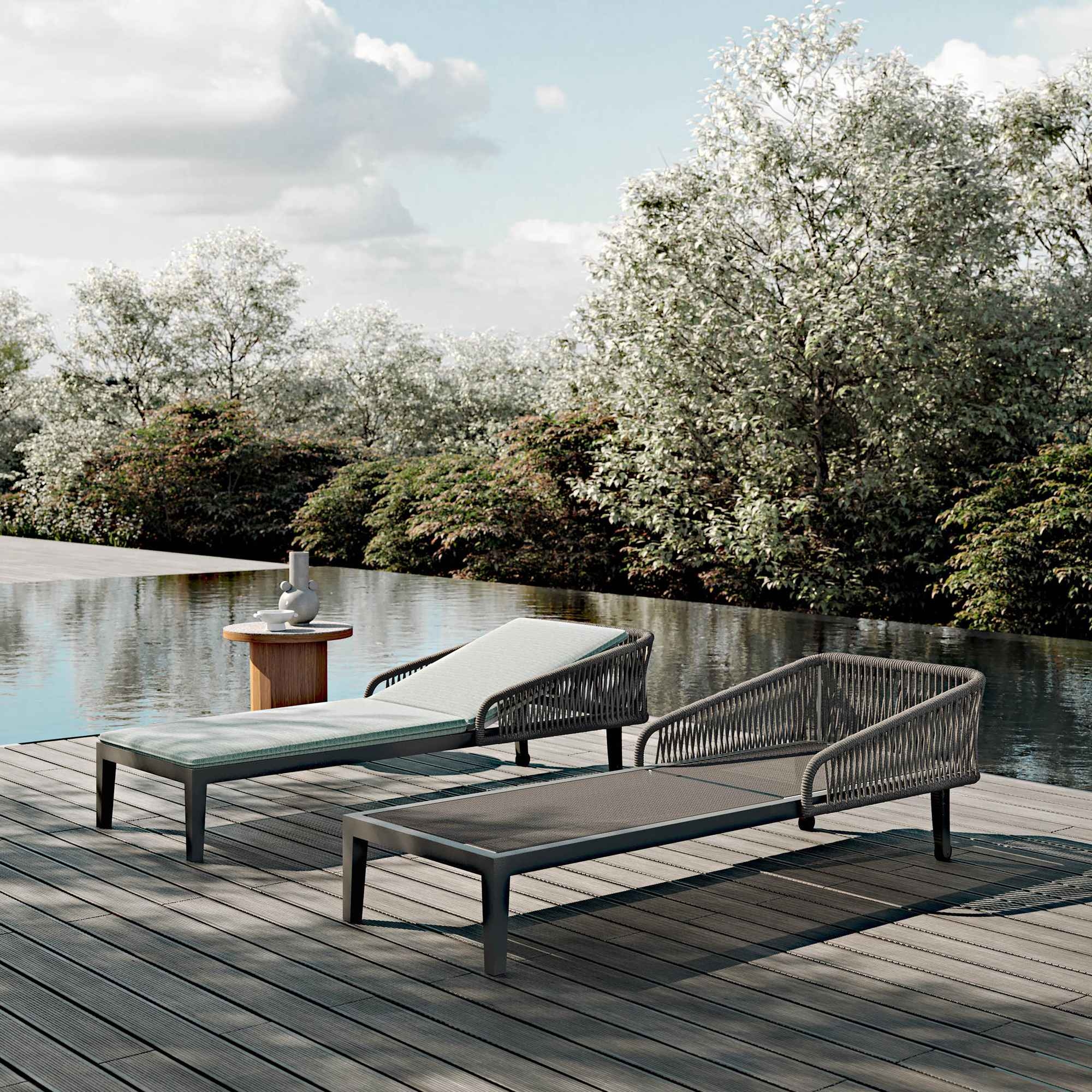 Lettino da esterno Dream 2.0 realizzato con struttura in alluminio verniciato epossidico per esterni, copertura posteriore in corda intrecciata mano e seduta in Teflon. Disponibile in 2 colorazioni per quanto riguarda la struttura, il lettino outdoor Dream 2.0 rappresenta l'apice del riposo all'aperto unito a una progettazione tecnologica avanzata. Il Dream 2.0 è una vera innovazione nel settore degli arredi per outdoor: intrecciato a mano con una fibra termoplastica acrilica Teflon che assicura idrorepellenza e semplicità nella pulizia. Questo materiale, oltre ad essere elastico e avere un 'appeal' morbido simile agli intrecci tessili, si distingue per la sua eccezionale resistenza ai raggi ultravioletti e per la sua rapida asciugatura. Perfetto per godersi il sole in giardino, a bordo piscina o in terrazza, il lettino Dream 2.0 è pensato per chi cerca non solo un prodotto funzionale ma anche un elemento d'arredo che aggiunga un tocco di stile e sofisticatezza all'ambiente esterno. Disegnato da Atmposhera Creative Lab.