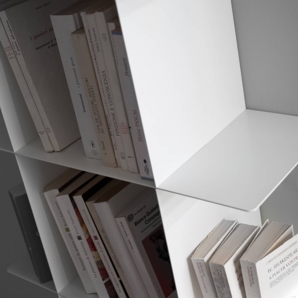 Libreria componibile Innesto realizzata in metallo verniciato a polvere. Disponibile in 16 colori RAL e in 2 colori metallizzati, la libreria componibile Innesto si presenta con un design contemporaneo ed elegante. Le mensole si incastrano nel modulo centrale, creando vani quadrati. Si può montare sia orizzontalmente che verticalmente, offrendo versatilità e resistenza. Disegnata da Enrico Cesana per Meme Design.