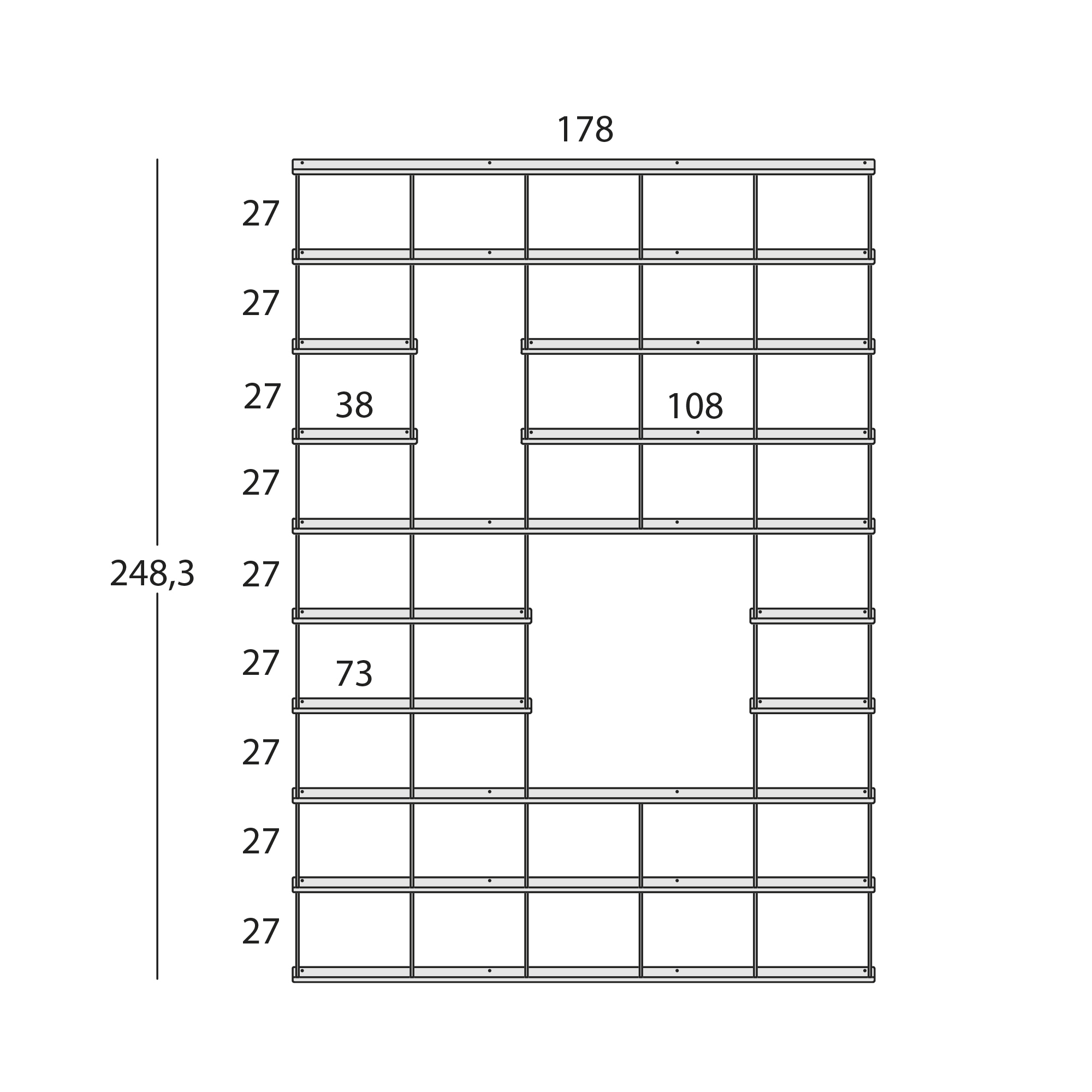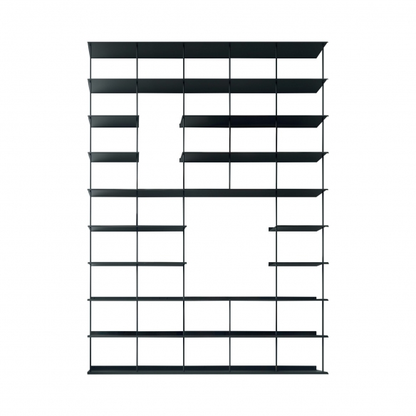 Libreria All-Over 178x248,3 cm realizzata in metallo laccato antracite goffrato. La Libreria All-Over di Caos Creativo non è solo una semplice libreria, ma un elemento d'arredo multifunzionale, pensato per adattarsi facilmente a qualsiasi ambiente della casa. Grazie alla sua versatilità e al design unico, la libreria All-Over è la soluzione ideale per chi desidera organizzare e personalizzare gli spazi in modo originale e creativo. Perfetta dall'ingresso all'ufficio e dalla zona giorno alla camera da letto, questa innovativa libreria si adatta perfettamente anche alla cucina e al bagno, offrendo soluzioni di arredo sempre attuali e sorprendenti.