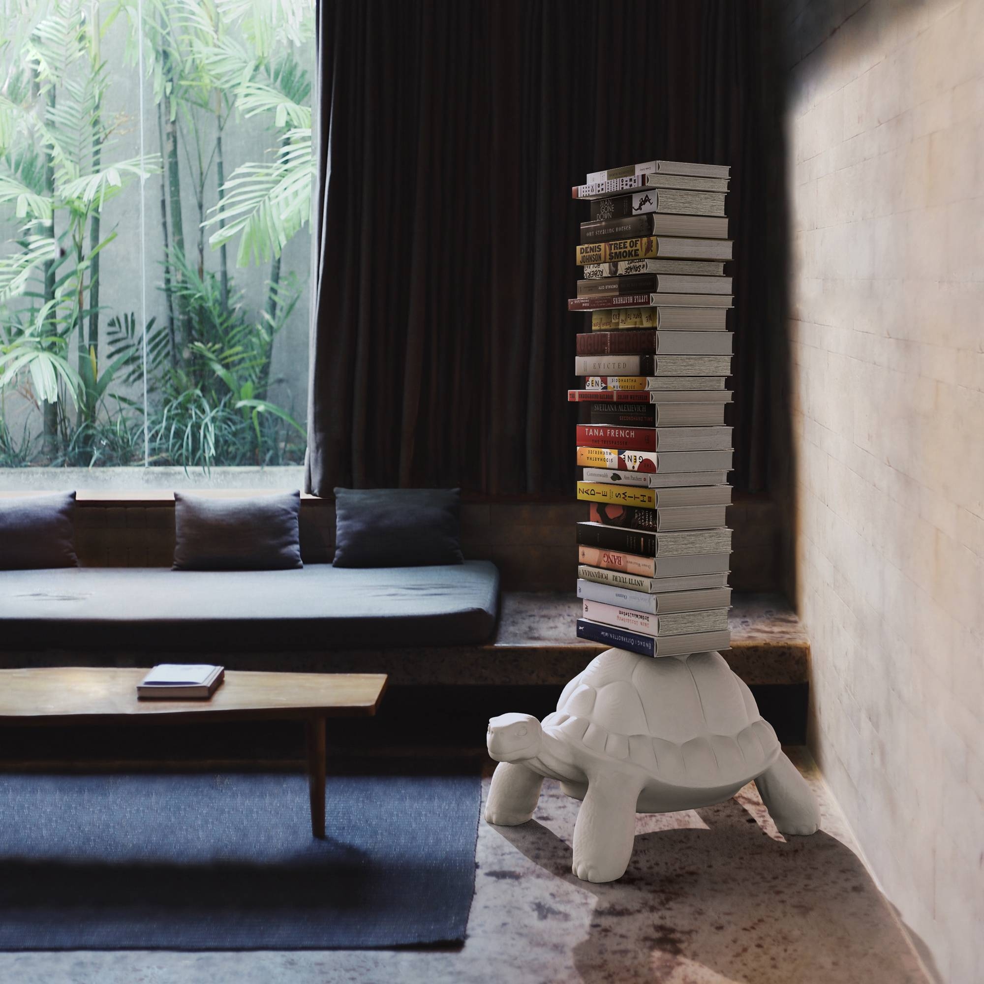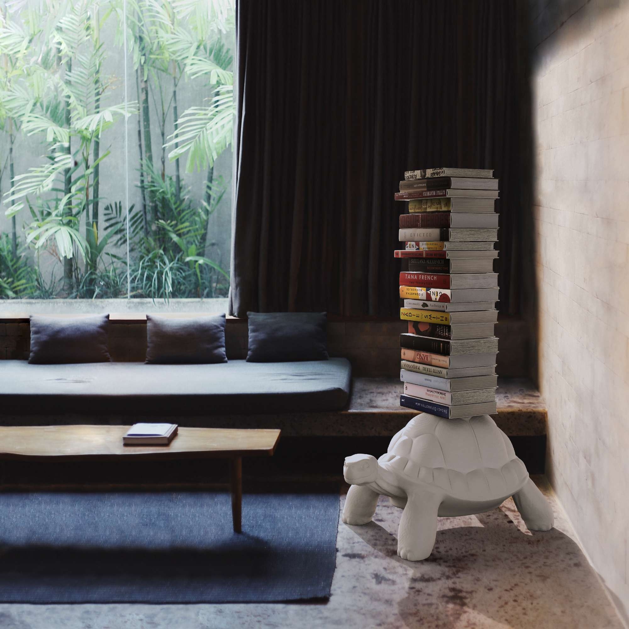 La libreria Turtle Carry è un prodotto fantastico realizzato da Qeeboo, con tartaruga in polietilene riciclabile e libreria in metallo, materiali che garantiscono resistenza, longevità e facilità di manutenzione e pulizia. La libreria Turtle Carry è disponibile in tre meravigliose colorazioni, bianco, nero e grigio tortora, ed è un esemplare di design contemporaneo. Grazie alla sua forma di tartaruga e alle sue linee pulite, questa libreria si abbina a qualsiasi tipo di ambiente, dal salotto alla cammera da letto. Ciò che distingue veramente la libreria è il suo design: una tartaruga che porta con sè una pila di libri e riviste sulla schiena; questo è sia un omaggio alla natura che un simbolo di forza e resistenza. La base funge da punto focale unico nel suo genere, capace di catturare l'attenzione dei tuoi ospiti e stimolare la conversazione. La libreria Turtle Carry non è solo un oggetto di arredamento, bensì una vera e propria scultura artistica. Disegnato da Marcantonio Malerba per Qeeboo.