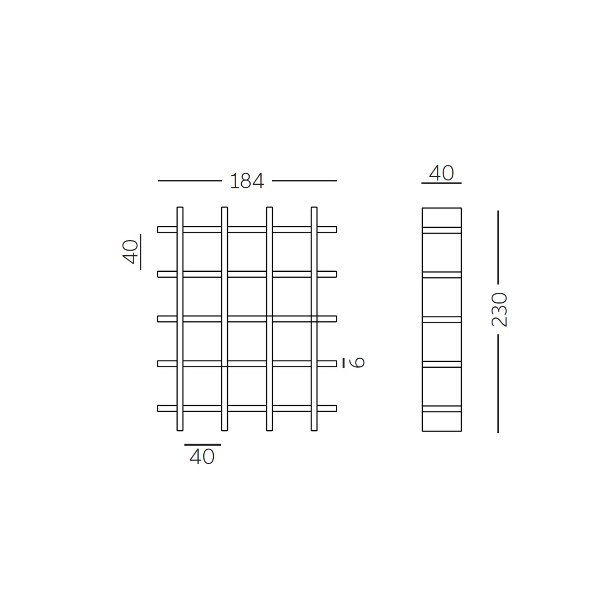 Dimensioni: Lunghezza 184 cm, Profondità 40 cm, Altezza 230 cm