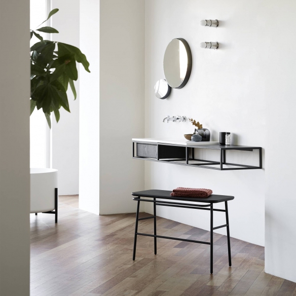 Il pensile da parete Frame con lavabo incluso è stato realizzato da Ex.t con la struttura in metallo verniciato e lavabo in marmo oppure in LivingTec®. Disponibile in varie combinazioni, questo meraviglioso pensile da parete ha uno stile rigoroso e minimalista che si adatta con perfezione a qualsiasi tipologia di arredamento: che sia posizionato all'interno di un bagno dal design tradizionale, moderno, all'avanguardia o minimalista, Frame è il complemento di arredo ideale. Le strutture permettono anche l’incastro di un mobile in legno verniciato o di cassetti per riporre i propri oggetti oppure la biancheria. Inoltre, il pensile da parete Frame è un sistema funzionale e flessibile, caratterizzato da strutture componibili in varie combinazioni. Il lavabo, in marmo oppure in LivingTec®, è perfettamente allineato con le dimensioni del mobile, creando così un aspetto coerente ed elegante. Con il suo equilibrio tra bellezza e funzionalità, il pensile da parete Frame con lavabo incluso si pone come testimone dell'impegno di Ex.t nel creare componenti per bagni che elevano gli spazi abitativi quotidiani. Disegnato da Norm Architects per Ex.t.