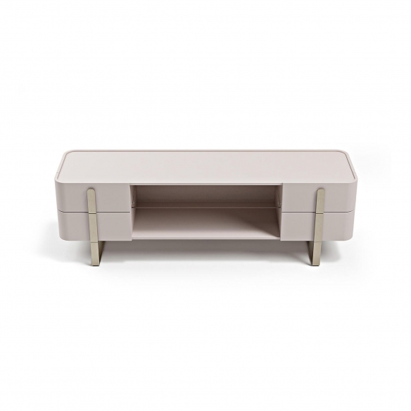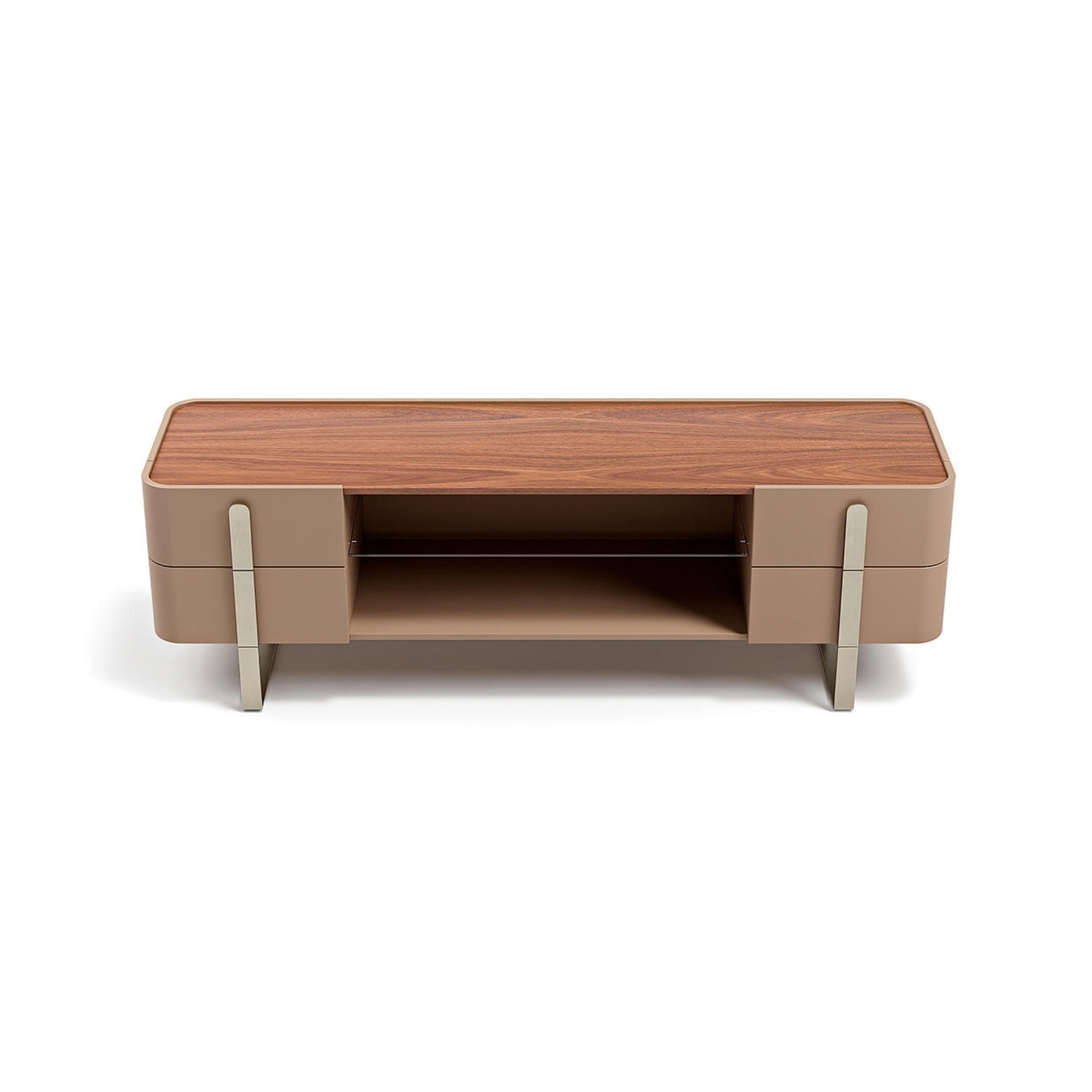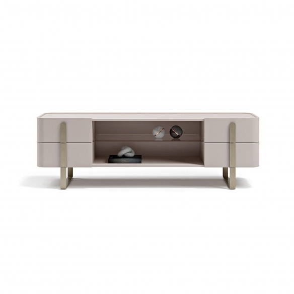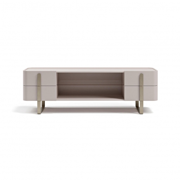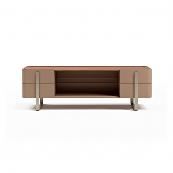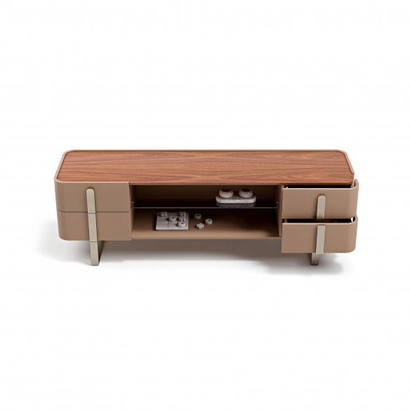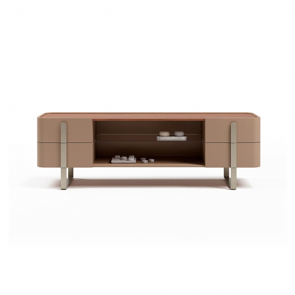 Eden è un bellissimo ed elegante mobile porta TV impeccabilmente realizzato da Capital con i migliorei materiali: struttura disponibile in laccato, top in essenza o laccato, maniglia e base in finitura metallica, vano a giorno con ripiano in vetro bronzato. Questo mobile TV di lusso non è solo un pezzo di arredamento ma una dichiarazione di gusto e opulenza esquisiti. Infatti, grazie alle sue varie combinazioni, è armoniosamente abbinabile a qualsiasi ambientazione e tipologia di design: che si tratti di mobile per soggiorno, camera da letto o studio, Eden aggiunge un tocco di splendore e classe senza eguali. Oltre all'estetica, il mobile porta TV Eden garantisce un'elevata funzionalità: offre ampio spazio di contenimento grazie a cassetti e ripiani che consentono di organizzare dispositivi di vario tipo, telecomandi e riviste, mantenendo l'ambiente circostante ordinato e senza fili a vista. La sua superficie superiore è sufficientemente ampia da ospitare schermi di varie dimensioni, fornendo il supporto ideale per qualsiasi tipo di TV. Design di Boatto Martino Studio.