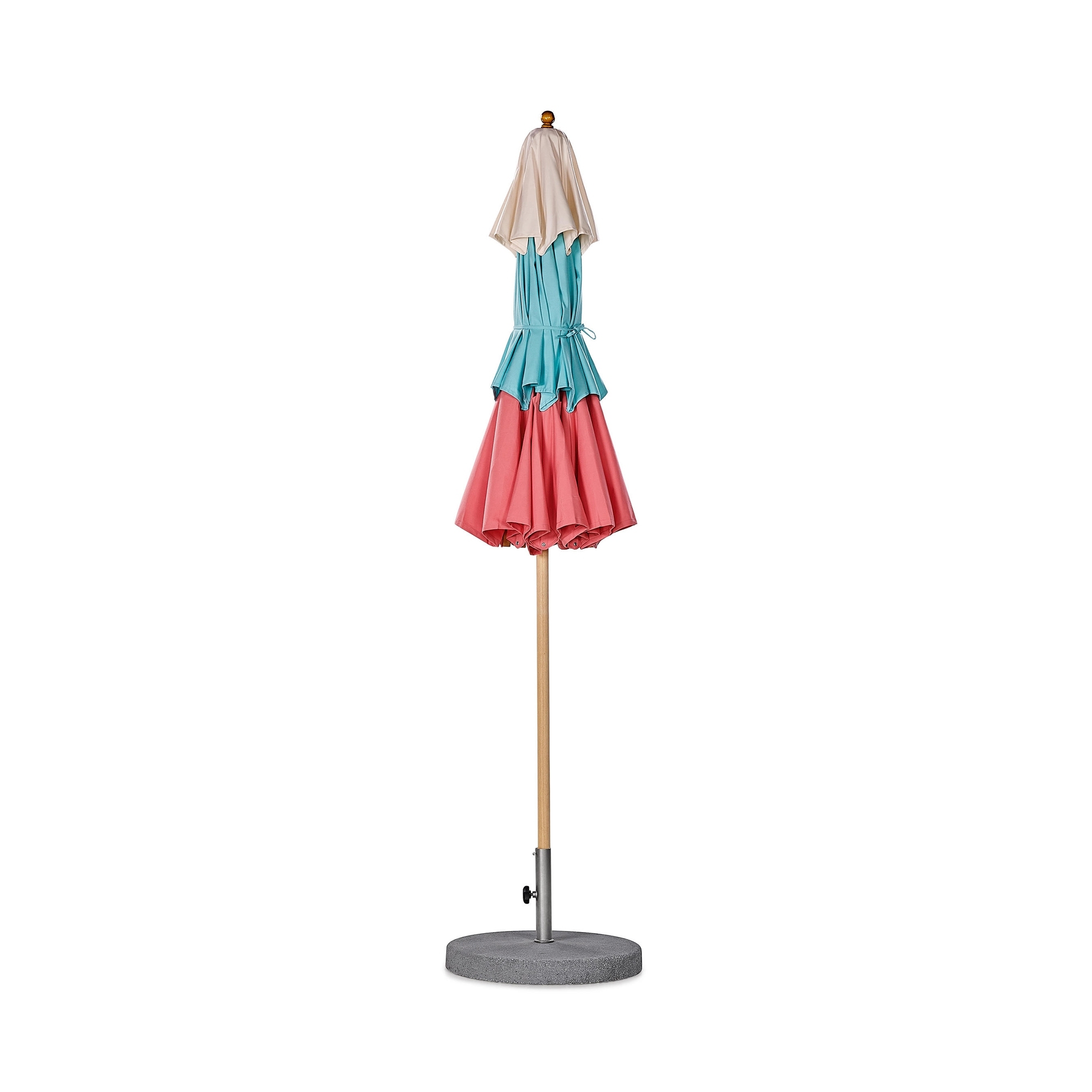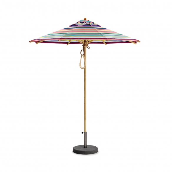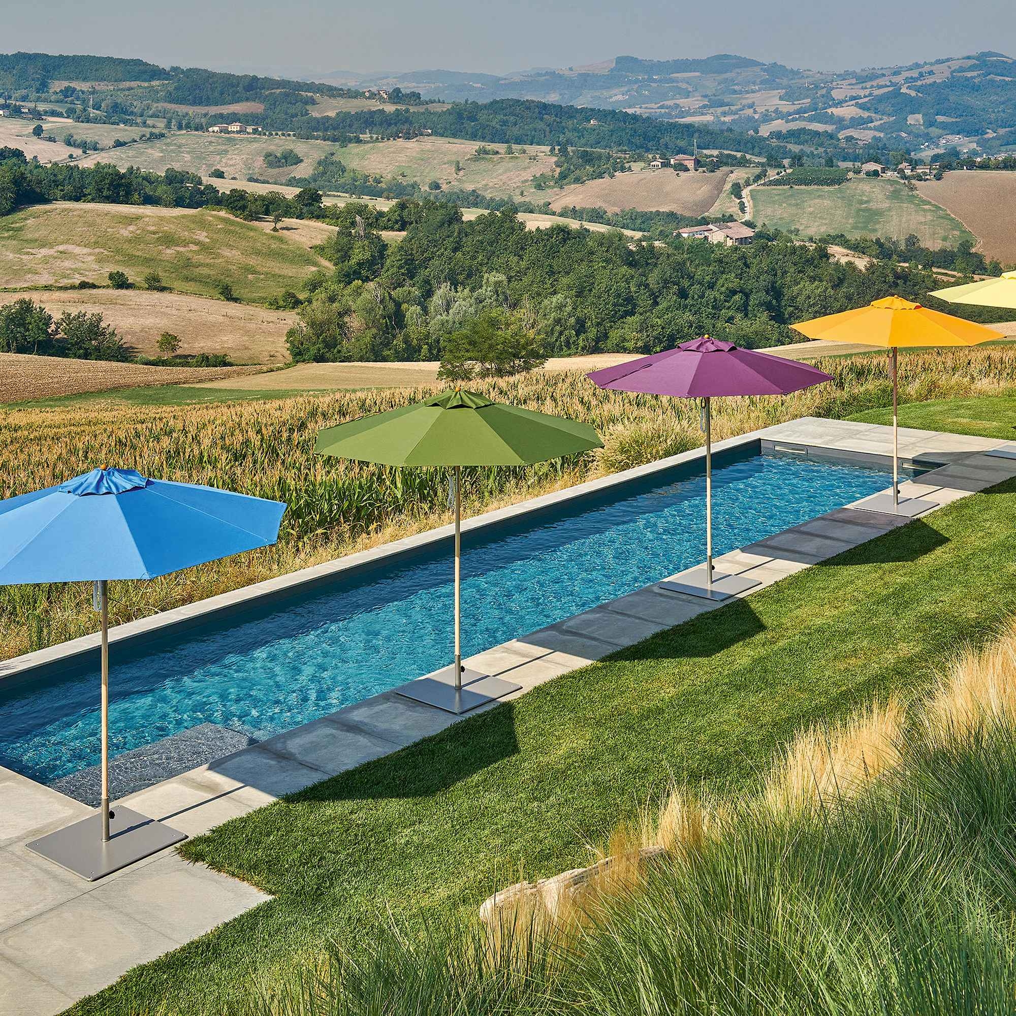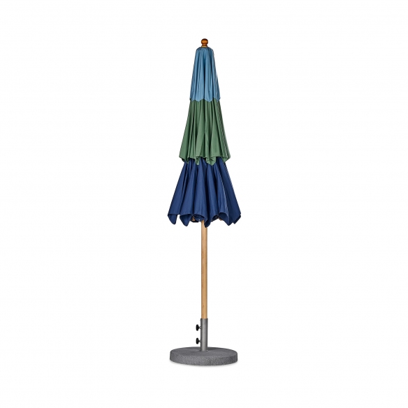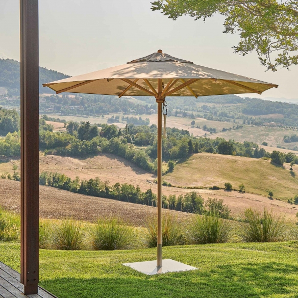 Ombrellone rotondo da giardino Klassiker realizzato con base in cemento, struttura in legno di frassino e telo parasole in tessuto acrilico outdoor. Disponibile in 7 dimensioni e in varie finiture di colore, l'ombrellone da giardino Klassiker si distingue per la sua versatilità estetica: potrai scegliere tra diverse varianti, incluse quelle miste, a brezza, a righe o con balze, per trovare l'ombrellone che si adatta meglio al tuo spazio esterno. Desideri rendere il tuo ombrellone ancora più unico? Offriamo la possibilità di aggiungere scritte personalizzate su richiesta, per un tocco esclusivo e distintivo. La struttura solida dell'ombrellone Klassiker, realizzata in massello di frassino con finitura protettiva, assicura resistenza e stabilità. Il palo, in multistrato di frassino, e i collegamenti in acciaio inossidabile con cinghie in pelle piegate aumentano la durabilità e aggiungono dettagli eleganti all'ombrellone. Il tessuto acrilico utilizzato per il tettuccio dell'ombrellone Klassiker è progettato per resistere alle intemperie, mantenendo la sua bellezza nel tempo. La protezione UV e la resistenza all'acqua garantiscono che il colore e la struttura del tessuto rimangano inalterati, anche con un uso prolungato all'aperto. Il Klassiker non si ferma qui: su richiesta, è possibile integrare un meccanismo di inclinazione, per regolare facilmente l'angolazione dell'ombra. Inoltre, ogni singola componente dell'ombrellone è sostituibile, assicurando che il tuo investimento sia duraturo nel tempo. Realizzato da Weishäupl.