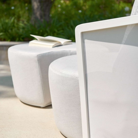 Il poggiapiedi con cuscini Cielo ha una robusta struttura in alluminio che promette resistenza agli agenti atmosferici, quali raggi UV, umidità e pioggia, e anche una lunga durata del prodotto, perfetto sia per spazi esterni che per spazi interni. Disponibile in due bellissime combinazioni, il poggiapiedi Cielo offre un riposo impareggiabile per momenti di relax nel giardino o a bordo piscina, grazie al suo cuscino rivestito di un tessuto speciale resistente all'acqua, conservando l'aspetto originale e bello nel tempo. Inoltre, questo bellissimo poggiapiedi è dotato di piedini regolabili che ne facilitano il livellamento a piacere dell'utente. Il design di Cielo è curato nei minimi dettagli, mostrano un design minimalista con linee pulite, perfetto per ogni contesto di arredamento; Cielo è perfetto sia per un giardino moderno con piscina a lato, che per un grande terrazzo con lo stile classico e tradizionale. Il poggiapiedi Cielo con cuscini inclusi può variare nell'utilizzo: da un semplice appoggio per i piedi, può diventare un mobile per seduta, oppure un magnifico elemento di arredamento che arricchisce l'atmosfera e la rende elegante e sofisticata. Il poggiapiedi Cielo è l'ideale per chi cerca di conciliare funzionalità, estetica e innovazione.