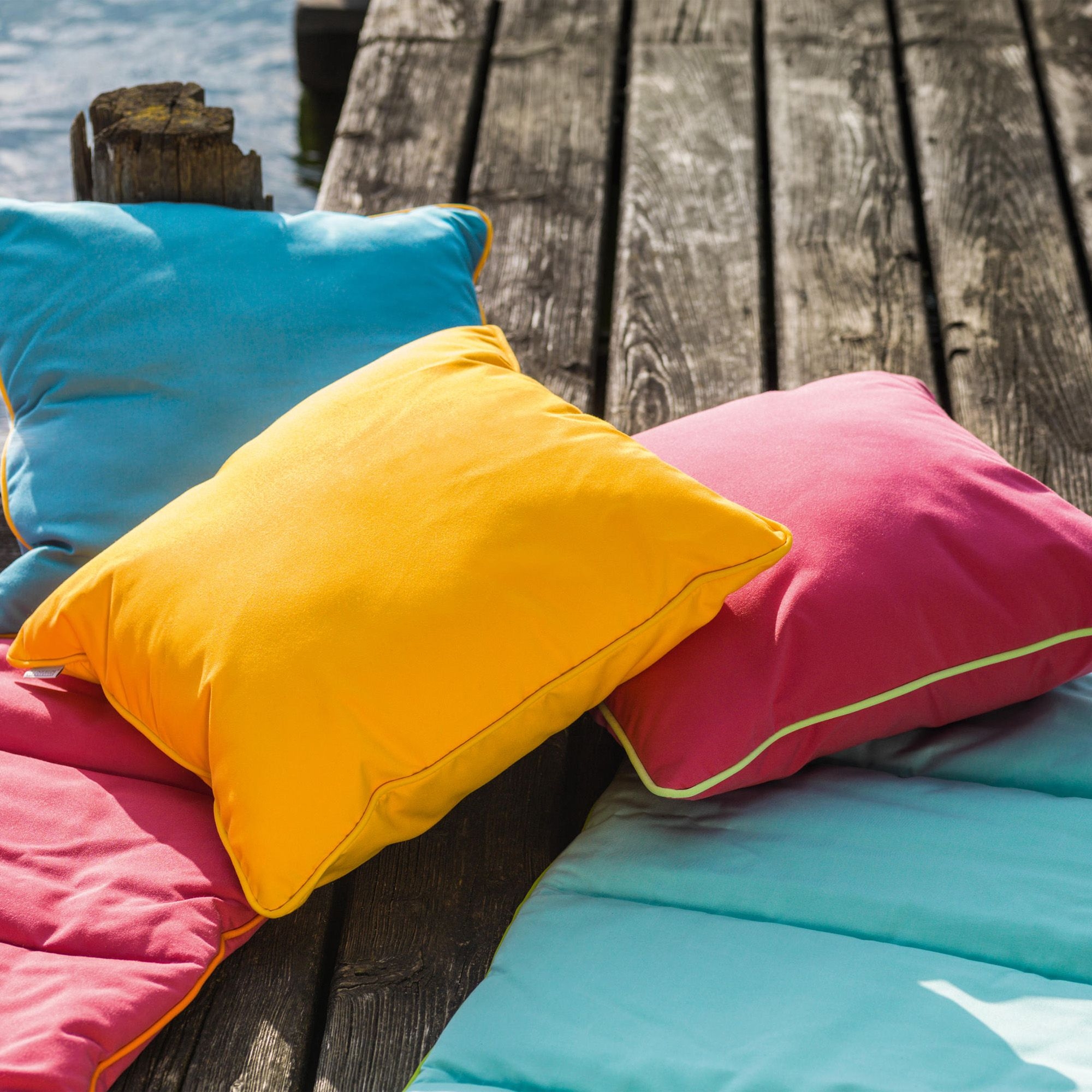 Cuscino outdoor 50x50 cm realizzato con imbottitura in schiuma/fibra rimovibile e rivestimento disponibile in 5 tessuti outdoor. Disponibile in una vasta gamma di colori, questo splendido cuscino è pensato per l'uso esterno, ed è realizzato con materiali di alta qualità, resistenti ai raggi UV, alla pioggia e a qualsiasi fattori climatici. Grazie ai tessuti innovativi, il cuscino è facile da pulire e asciuga rapidamente, assicurando che possa essere pronto per il tuo prossimo barbecue o sessione di relax in piscina senza preoccupazioni. Ogni cuscino è rifinito con attenzione ai dettagli, come le cuciture resistenti che ne aumentano la durata. Il design è pensato per unire forma e funzione, assicurando che ogni elemento contribuisca al comfort e all'estetica del tuo outdoor. Realizzato da Weishäupl.