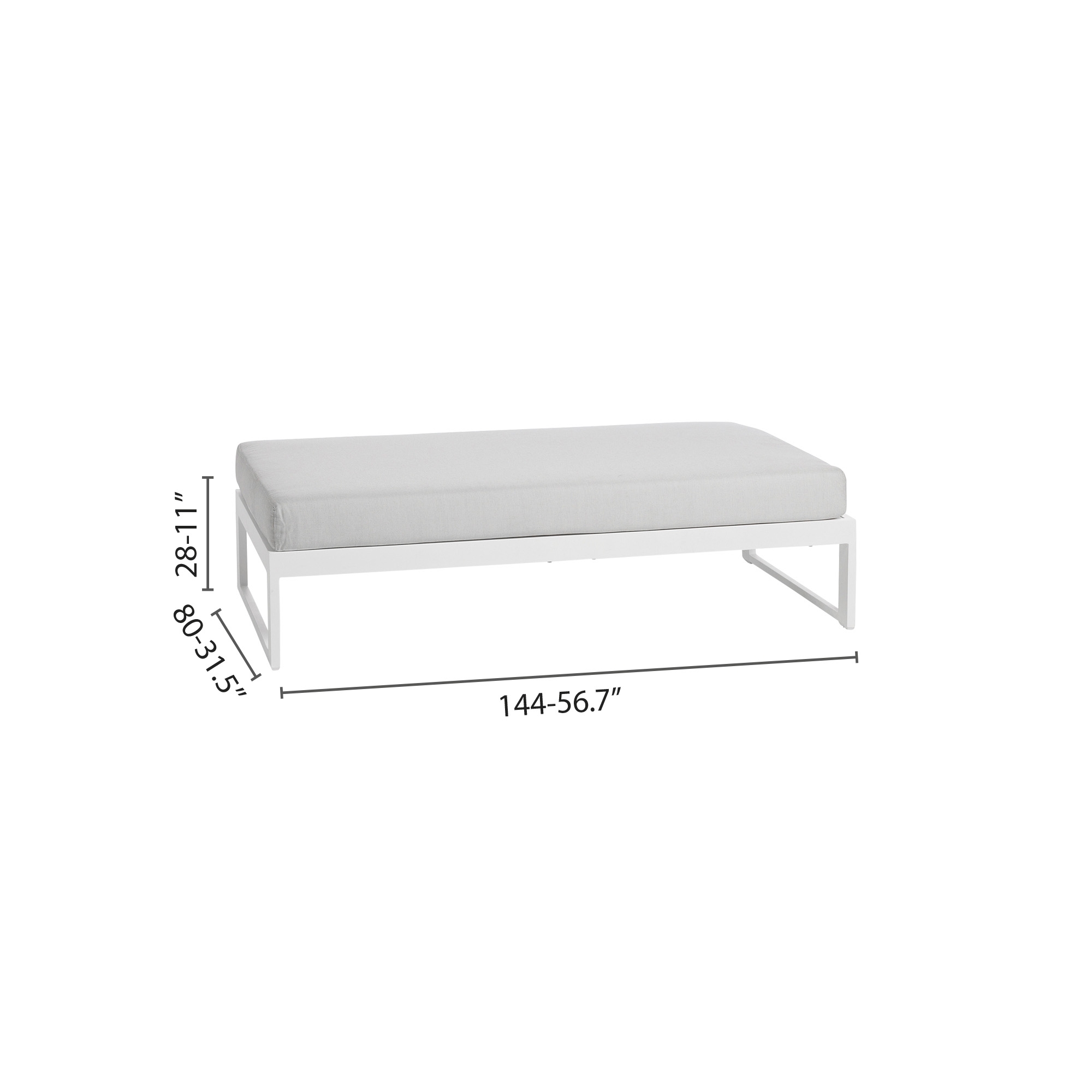 Dimensioni: Lunghezza 144 cm, Profondità 80 cm, Altezza 28 cm