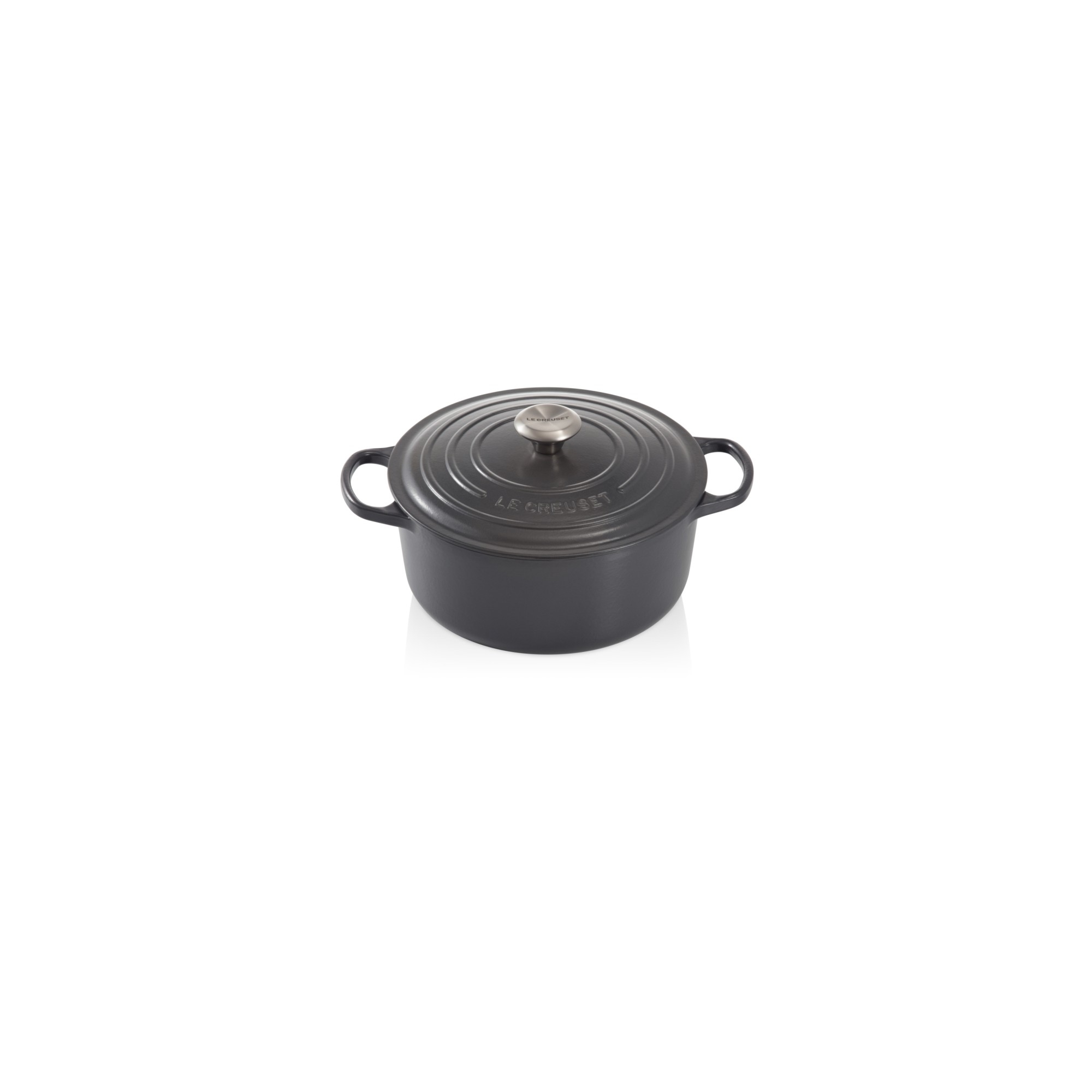 Casseruola Cocotte rotonda Evolution in ghisa vetrificata dal diametro di 22 cm disponibile in 5 finiture di colore: Arancio, Blu Marsiglia, Ciliegia, Nero Matt e Meringue, realizzata da Le Creuset.