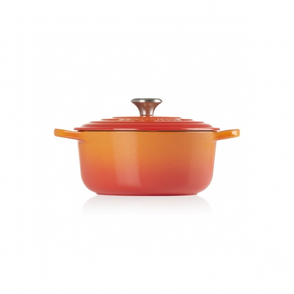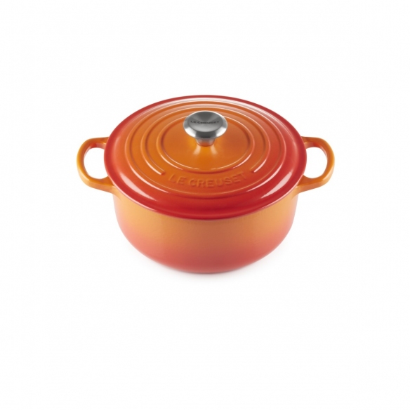 Casseruola Cocotte rotonda Evolution in ghisa vetrificata dal diametro di 22 cm disponibile in 5 finiture di colore: Arancio, Blu Marsiglia, Ciliegia, Nero Matt e Meringue. Questa particolare casseruola garantisce ampia versatilità d'uso per la preparazione e conservazione degli alimenti. Questo prodotto, come gli altri modelli in ghisa, è realizzato versando la ghisa liquida all'interno di stampi di sabbia che vengono successivamente rotti per passare alla fase di tripla vetrificazione ad alta temperatura su tutta la superficie. La vetrificazione iniziale garantisce lunga durata e resistenza agli sbalzi termici, le successive vetrificazioni conferiscono una finitura dai colori vivaci. La Casseruola Cocotte è adatta a tutte le fonti di calore, induzione e forno compresi. La superficie vetrificata non assorbe o trasferisce umidità, odori, sapori alle pietanze in cottura, resiste ad ogni tipo di acidità e mantiene il sapore e le proprietà nutritive dei cibi. E' molto facile da usare grazie agli ampi manici che garantiscono una presa sicura e grazie anche al pomolo in acciaio inox che disperde facilmente il calore. L'ottima conduzione e lo spessore uniforme della ghisa garantiscono una distribuzione omogenea del calore. Il coperchio è il jolly di questo prodotto: grazie alla forma bombata ed alla sua struttura, si crea un ambiente umido che idrata le pietanze, mantenendole perfette. Realizzata da Le Creuset. Sfoglia il catalogo su newpop.it per scoprire gli altri prodotti della vasta gamma Le Creuset!