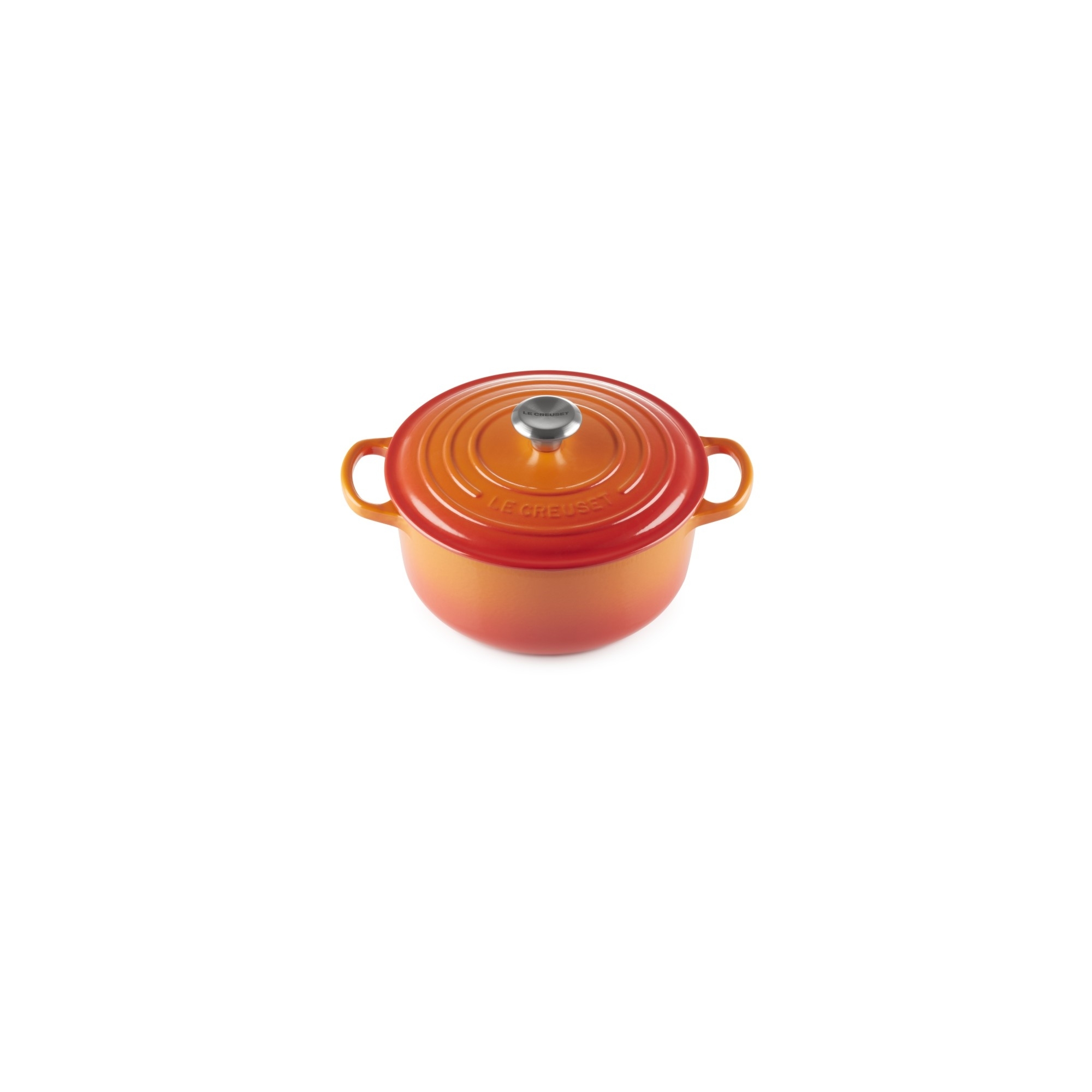 Casseruola Cocotte rotonda Evolution in ghisa vetrificata dal diametro di 22 cm disponibile in 5 finiture di colore: Arancio, Blu Marsiglia, Ciliegia, Nero Matt e Meringue, realizzata da Le Creuset.