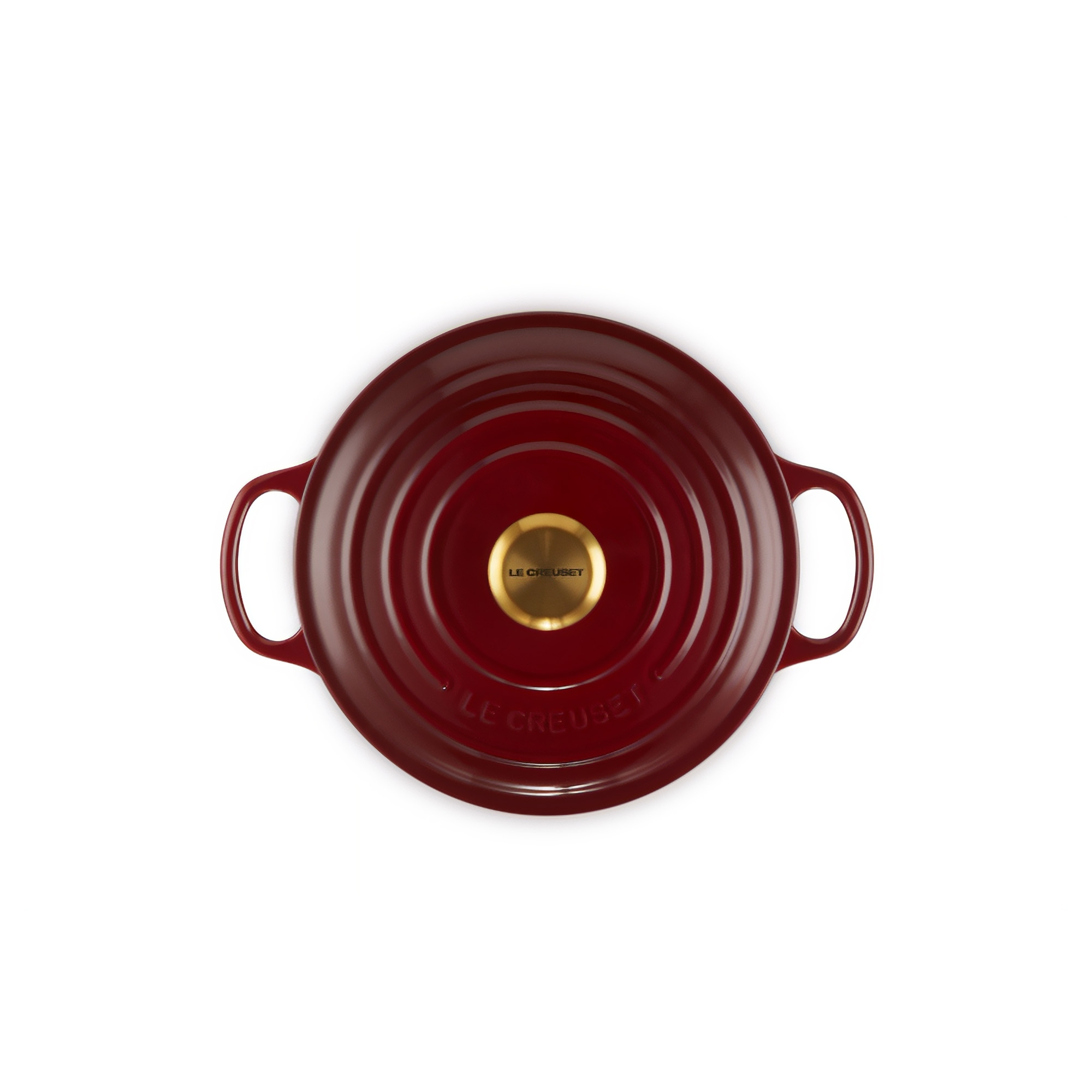 Casseruola Cocotte rotonda Evolution in ghisa vetrificata dal diametro di 24 cm disponibile in 10 finiture di colore: Nero Matt, Ciliegia, Arancio, Blu Marsiglia, Deep Teal, Blu Caribe, Giallo, Mist Grey, Shell Pink e Meringue, realizzata da Le Creuset.