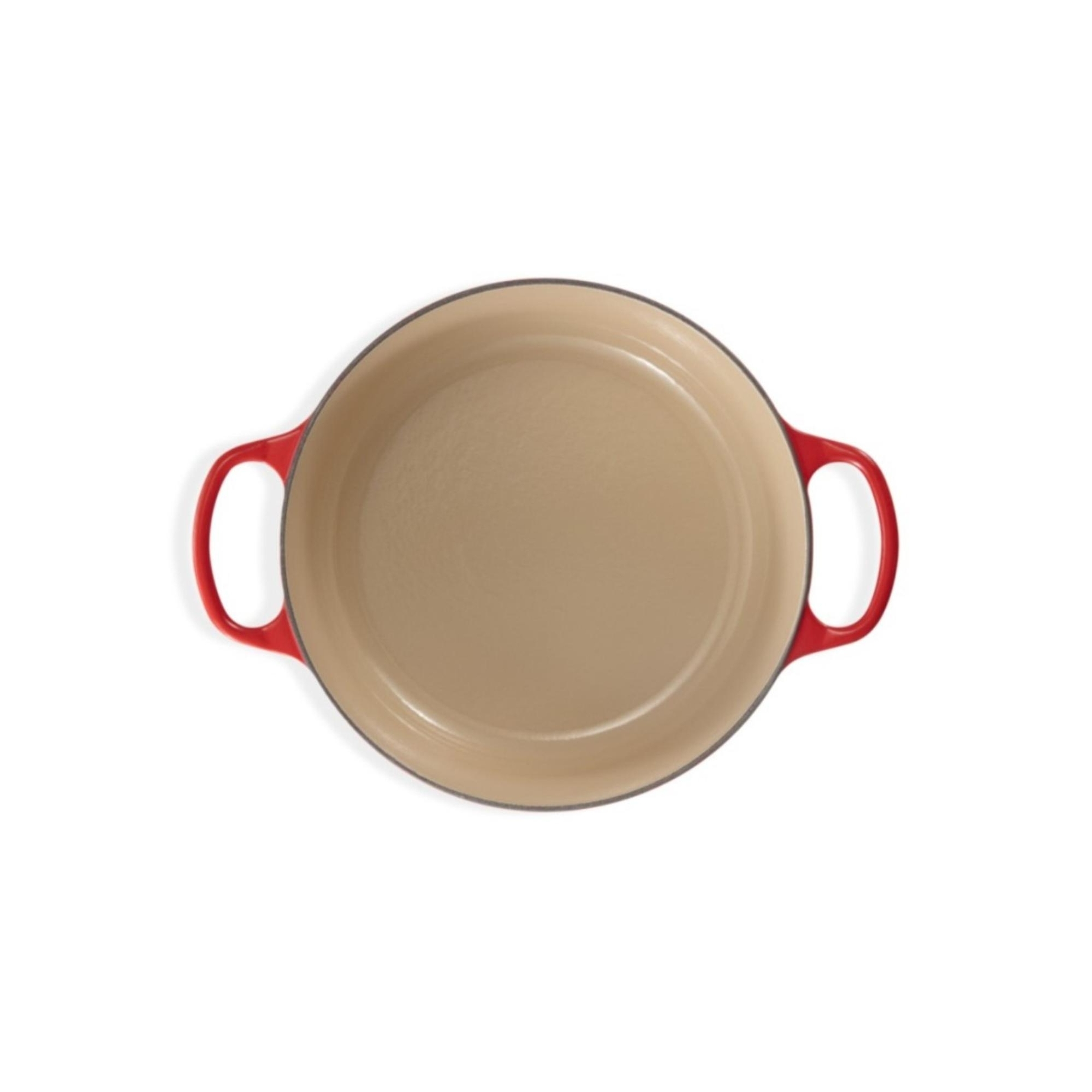 Casseruola Cocotte rotonda Evolution in ghisa vetrificata dal diametro di 26 cm disponibile in 5 finiture di colore: Arancio, Blu Marsiglia, Ciliegia, Nero Matt e Meringue, realizzata da Le Creuset.