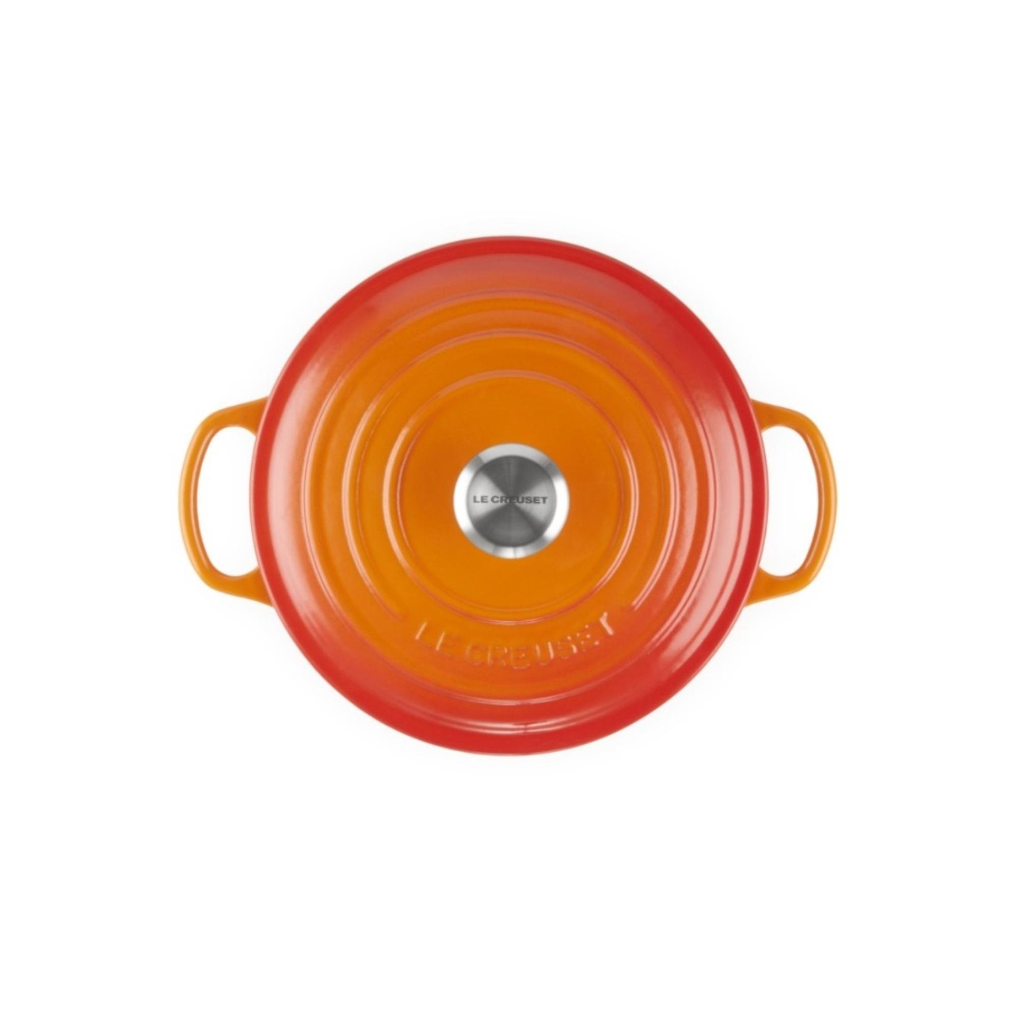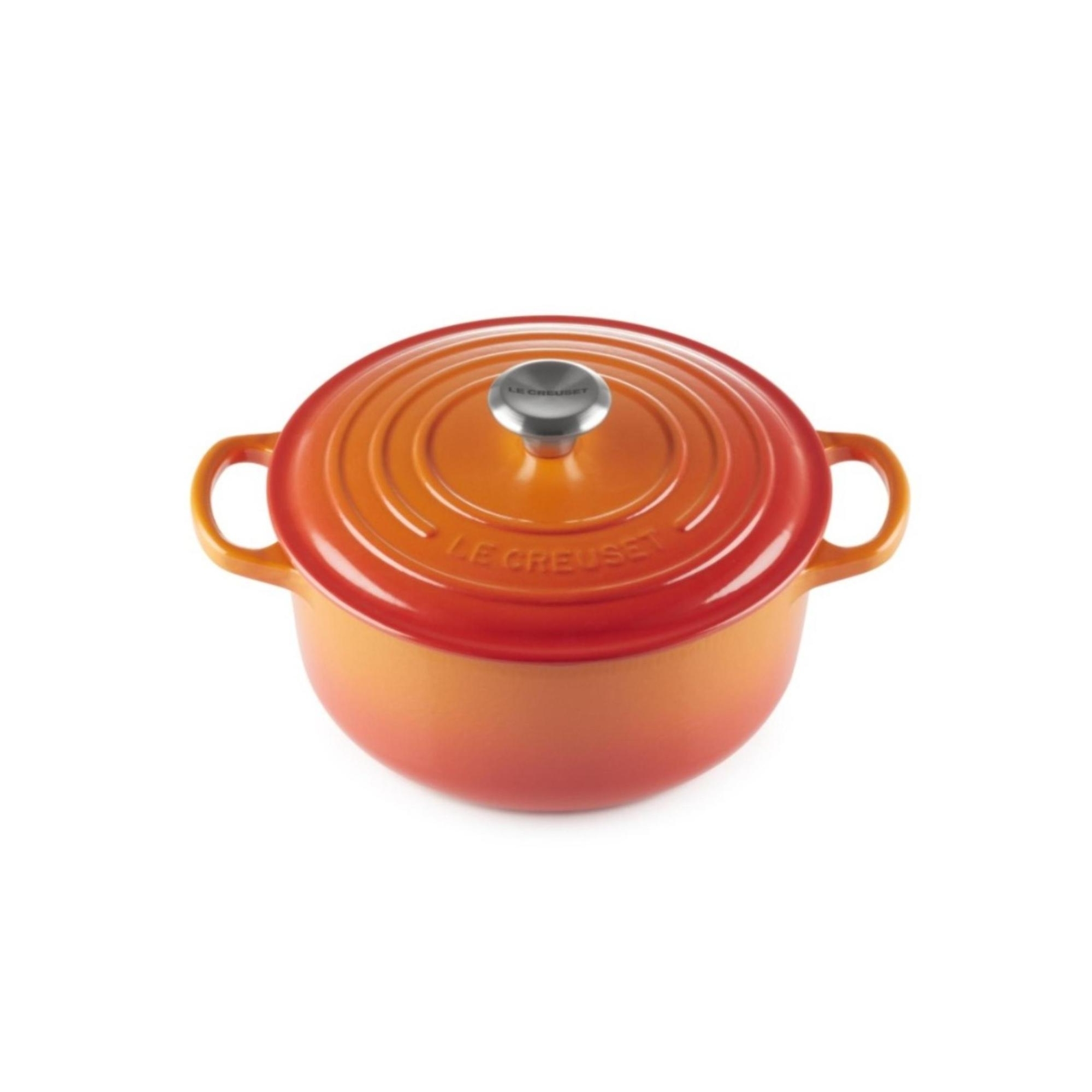 Casseruola Cocotte rotonda Evolution in ghisa vetrificata dal diametro di 26 cm disponibile in 5 finiture di colore: Arancio, Blu Marsiglia, Ciliegia, Nero Matt e Meringue, realizzata da Le Creuset.