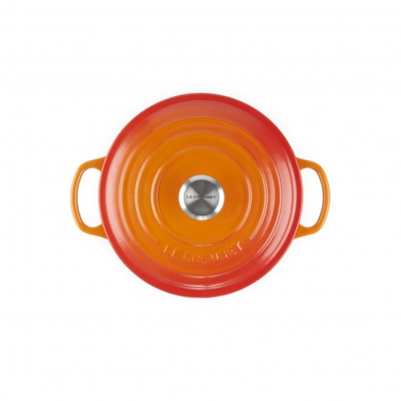 Casseruola Cocotte rotonda Evolution in ghisa vetrificata dal diametro di 26 cm disponibile in 5 finiture di colore: Arancio, Blu Marsiglia, Ciliegia e Nero Matt e Meringue. Questa particolare casseruola garantisce ampia versatilità d'uso per la preparazione e conservazione degli alimenti. Questo prodotto, come gli altri modelli in ghisa, è realizzato versando la ghisa liquida all'interno di stampi di sabbia che vengono successivamente rotti per passare alla fase di tripla vetrificazione ad alta temperatura su tutta la superficie. La vetrificazione iniziale garantisce lunga durata e resistenza agli sbalzi termici, le successive vetrificazioni conferiscono una finitura dai colori vivaci. La Casseruola Cocotte è adatta a tutte le fonti di calore, induzione e forno compresi. La superficie vetrificata non assorbe o trasferisce umidità, odori, sapori alle pietanze in cottura, resiste ad ogni tipo di acidità e mantiene il sapore e le proprietà nutritive dei cibi. E' molto facile da usare grazie agli ampi manici che garantiscono una presa sicura e grazie anche al pomolo in acciaio inox che disperde facilmente il calore. L'ottima conduzione e lo spessore uniforme della ghisa garantiscono una distribuzione omogenea del calore. Il coperchio è il jolly di questo prodotto: grazie alla forma bombata ed alla sua struttura, si crea un ambiente umido che idrata le pietanze, mantenendole perfette. Realizzata da Le Creuset. Sfoglia il catalogo su newpop.it per scoprire gli altri prodotti della vasta gamma Le Creuset!
