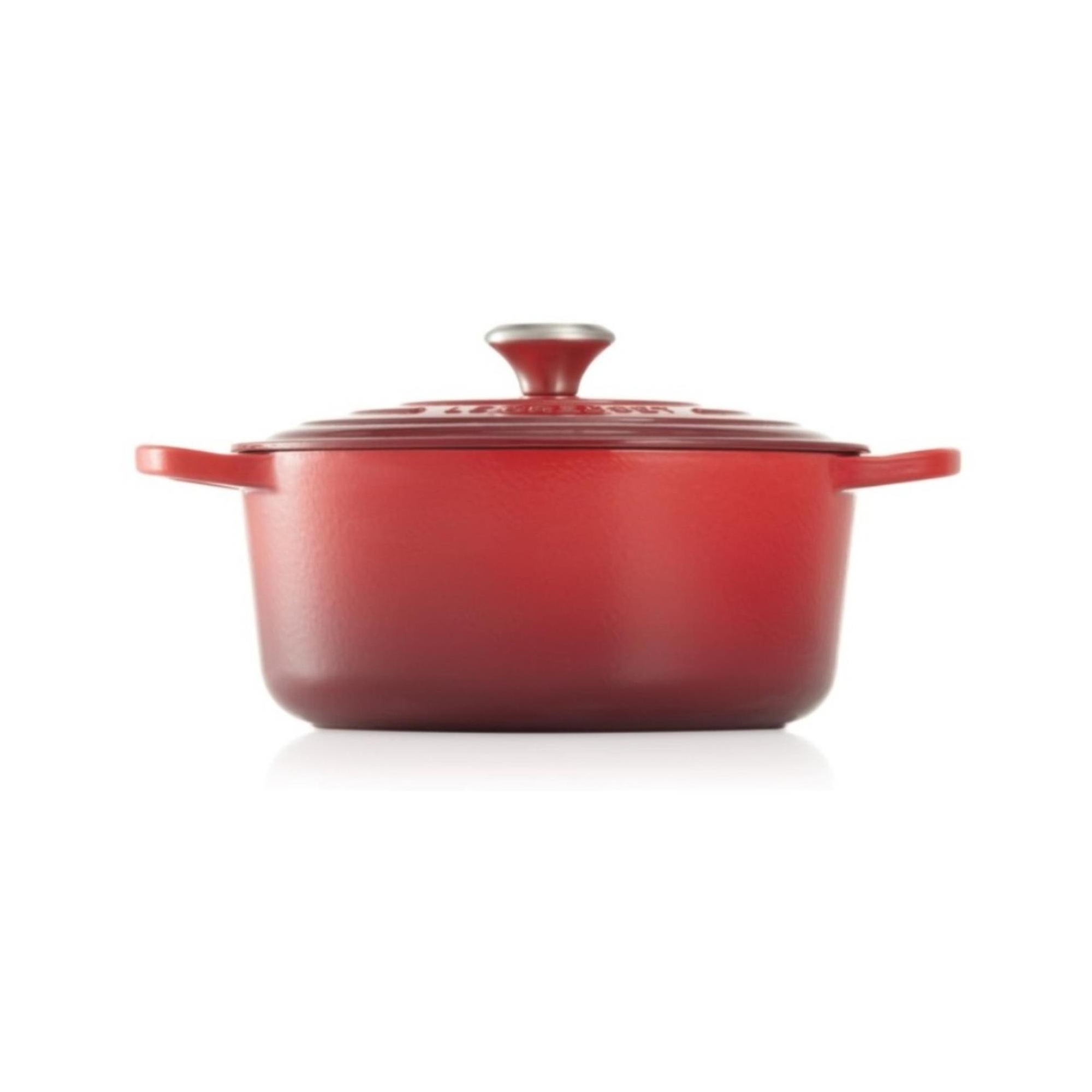 Casseruola Cocotte rotonda Evolution in ghisa vetrificata dal diametro di 28 cm disponibile in 4 finiture di colore: Arancio, Blu Marsiglia, Ciliegia e Nero Matt, realizzata da Le Creuset.