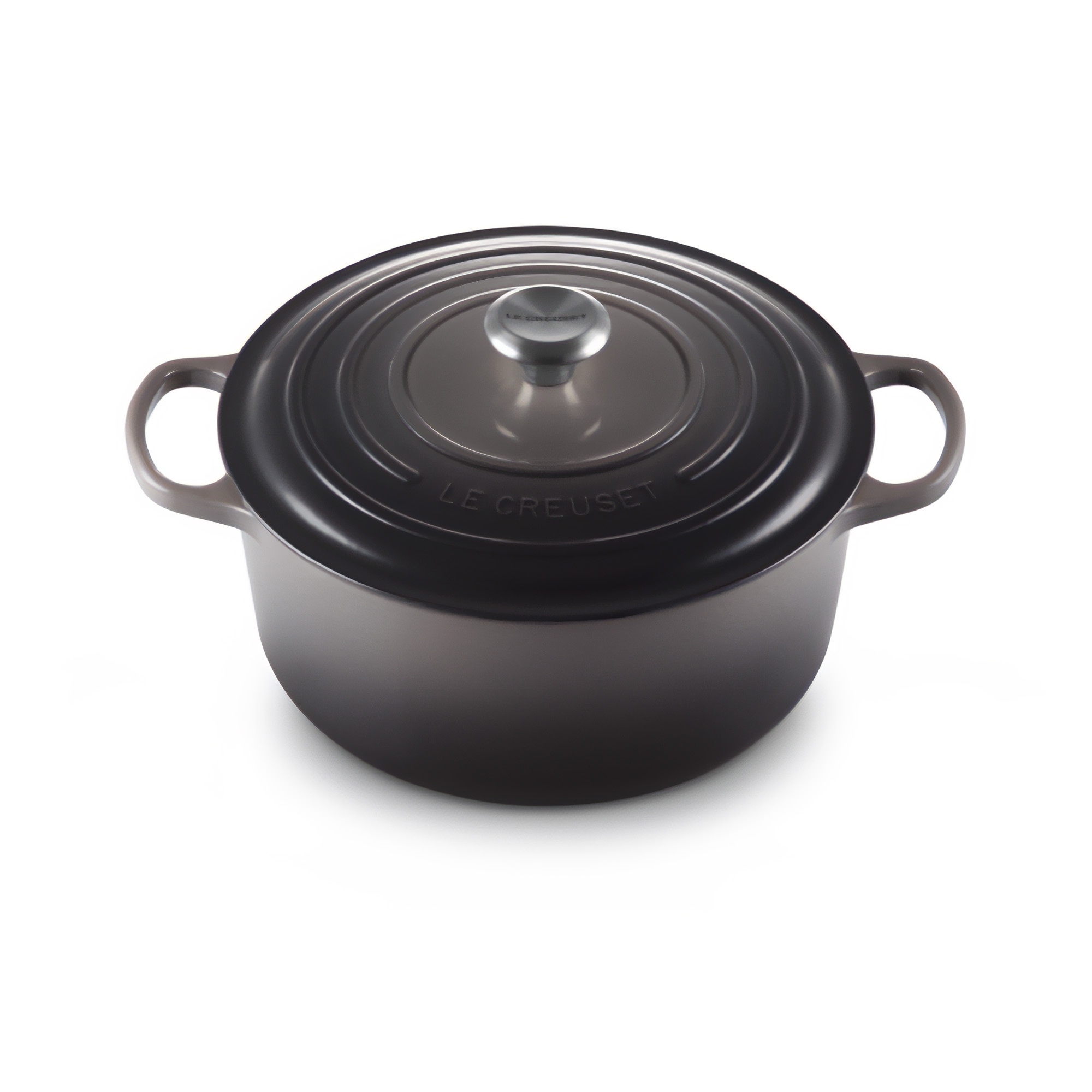 Casseruola Cocotte rotonda Evolution in ghisa vetrificata dal diametro di 28 cm disponibile in 4 finiture di colore: Arancio, Blu Marsiglia, Ciliegia e Nero Matt, realizzata da Le Creuset.
