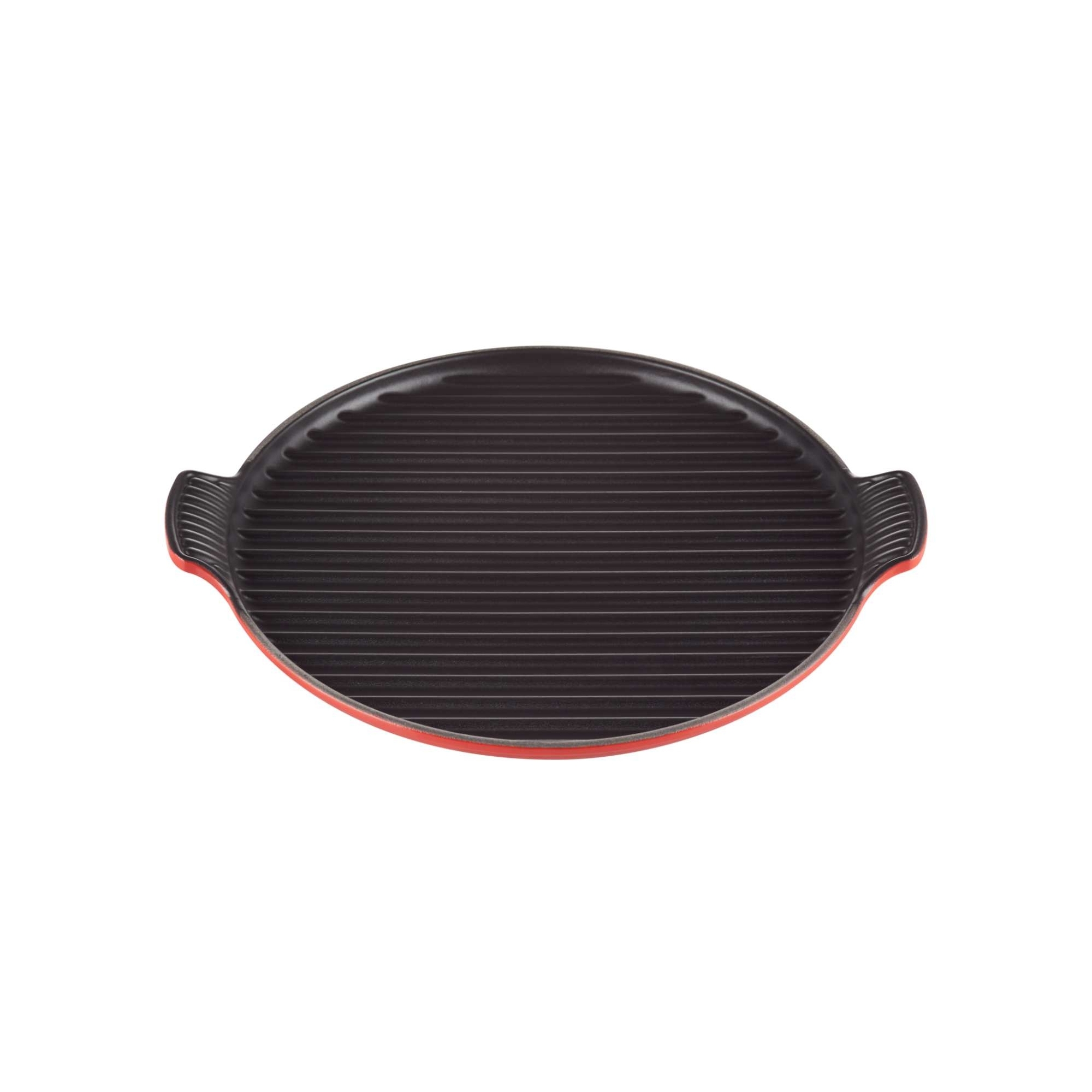Grill rotondo in ghisa vetrificata nel formato extralarge disponibile nei colori ciliegia e nero, realizzato da Le Creuset.