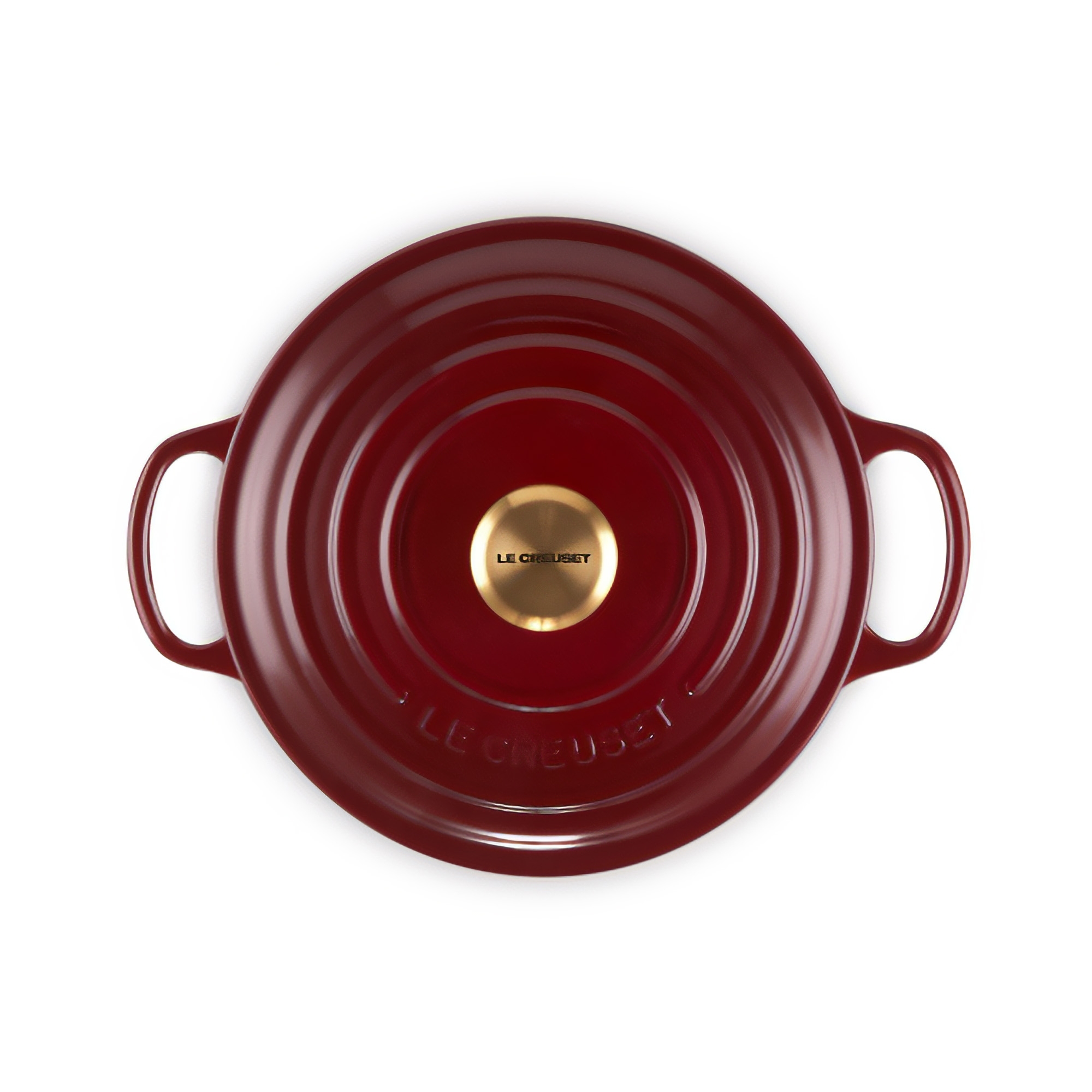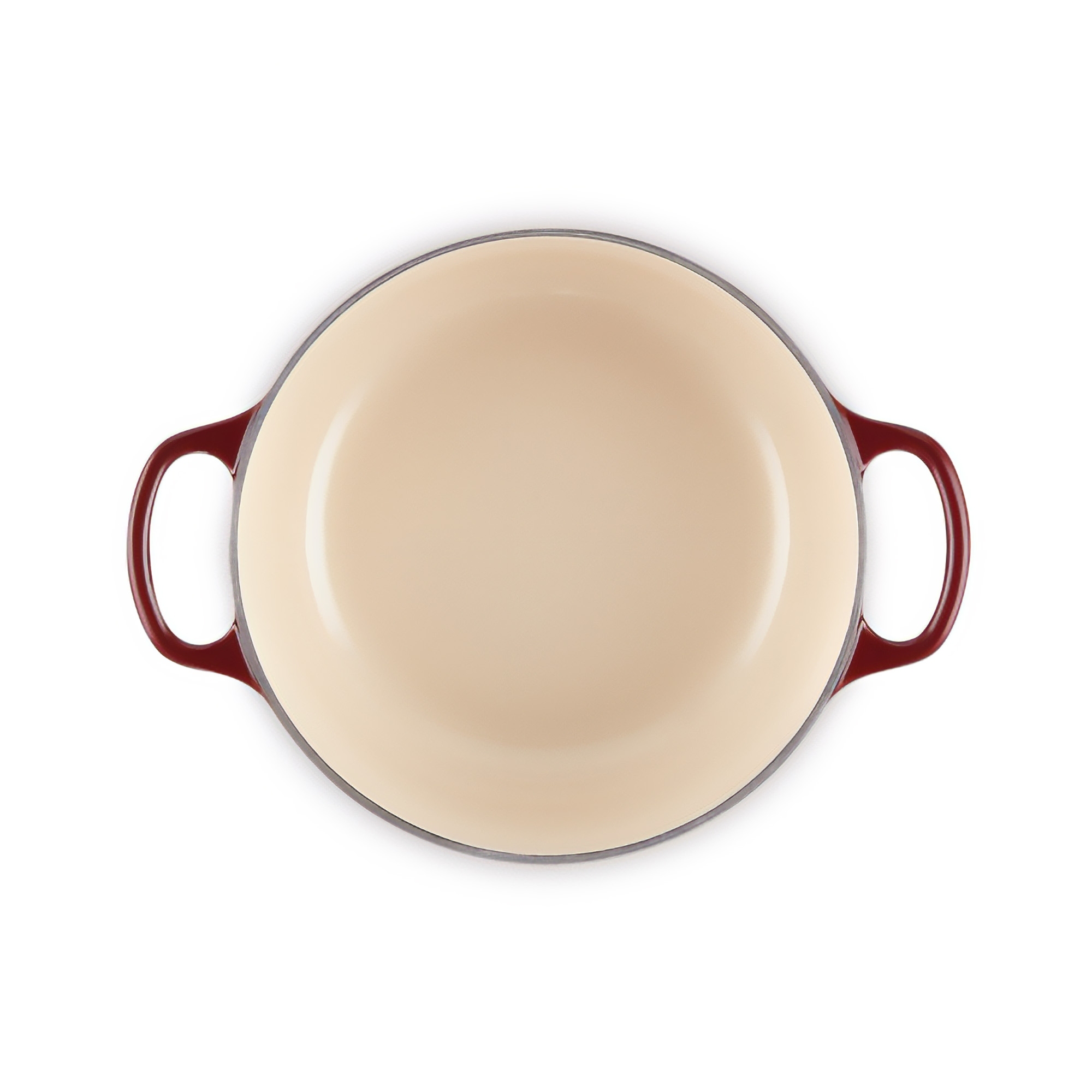 Casseruola Cocotte rotonda Evolution in ghisa vetrificata dal diametro di 20 cm disponibile in 10 finiture di colore: Nero Matt, Ciliegia, Arancio, Blu Marsiglia, Deep Teal, Blu Caribe, Giallo, Mist Grey, Shell Pink e Meringue, realizzata da Le Creuset.