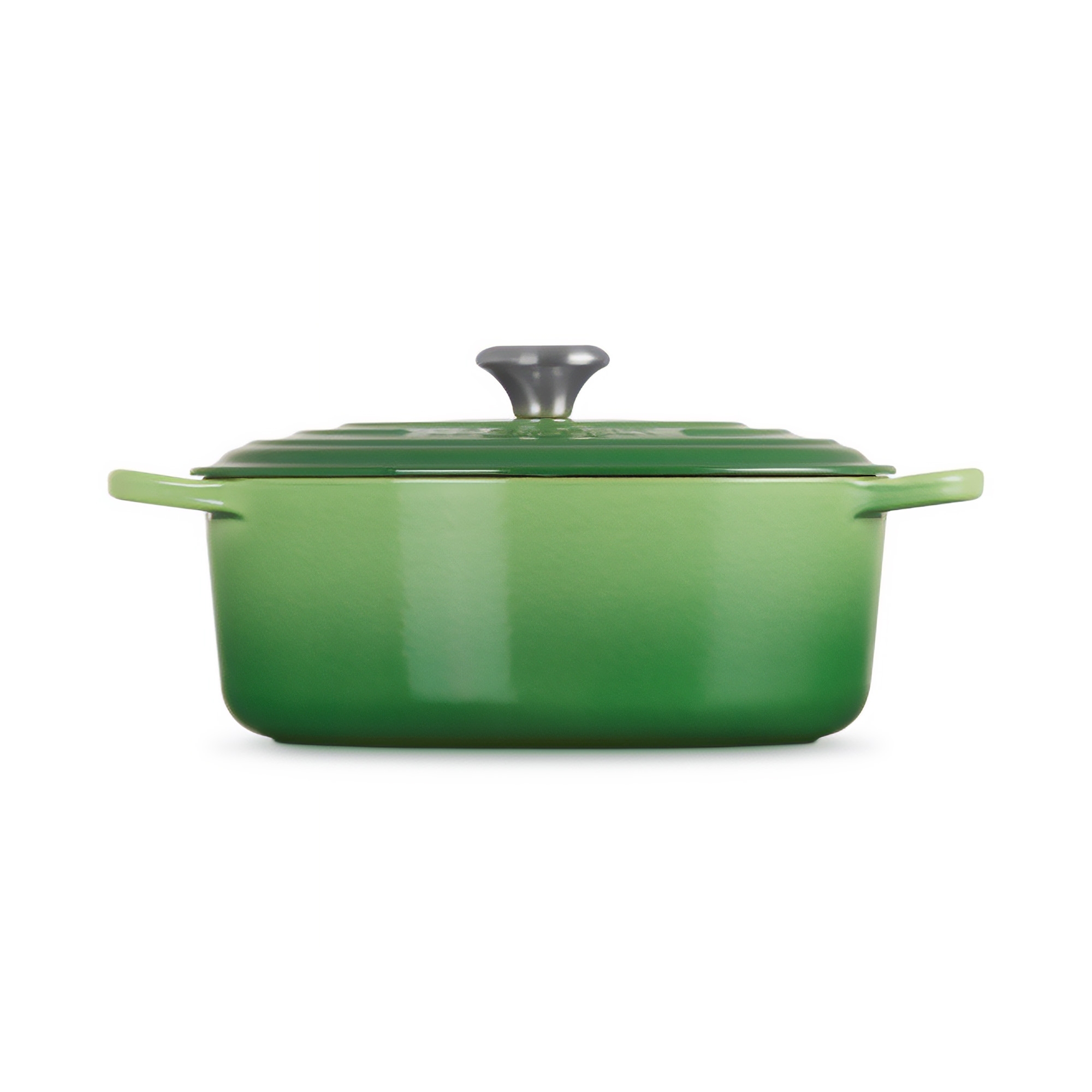 Casseruola Cocotte ovale Evolution realizzata in ghisa vetrificata. Disponibile in 9 finiture di colore, questa casseruola è l'elemento indispensabile per la tua cucina! Il punto di forza di Le Creuset è il materiale utilizzato per creare oggetti unici nel suo genere: la ghisa vetrificata infatti non solo è uno dei materiali più igienici e duraturi, ma trattiene il calore per cucinare e rosolare in modo uniforme ottenendo cibi di grande gusto! Questa fantastica Casseruola dispone di due grandi e pratici manici, così potrai spostarti dal piano cottura alla tavola in modo pratico e sicuro! La ciliegina sulla torta è il coperchio: il pomolo al centro è resistente al calore (fino a 250 °C) ed è progettato per un'ottima presa! Progettata e realizzata da Le Creuset.