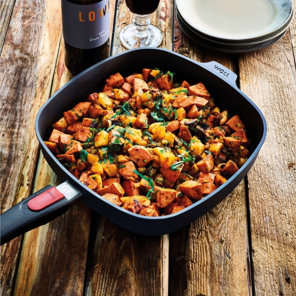 Bistecchiera Diamond Lite (24x24 cm) realizzata in in alluminio fuso forgiato a mano con bordo rinforzato. Realizzata con materiali antiaderenti di alta qualità, assicura una cottura uniforme e una facile rimozione del cibo. Con il suo design resistente e durevole, è perfetta per cucinare carne, pesce e verdure con risultati deliziosi ogni volta. Corpo resistente in forno fino a 250°C e lavabile in lavastoviglie. Realizzata da Woll.