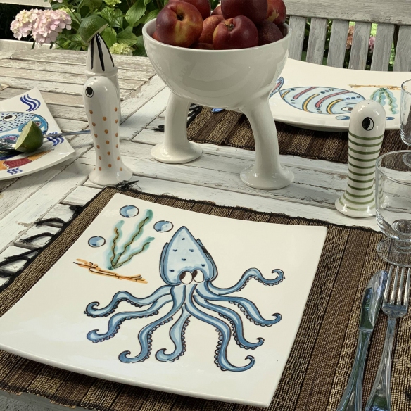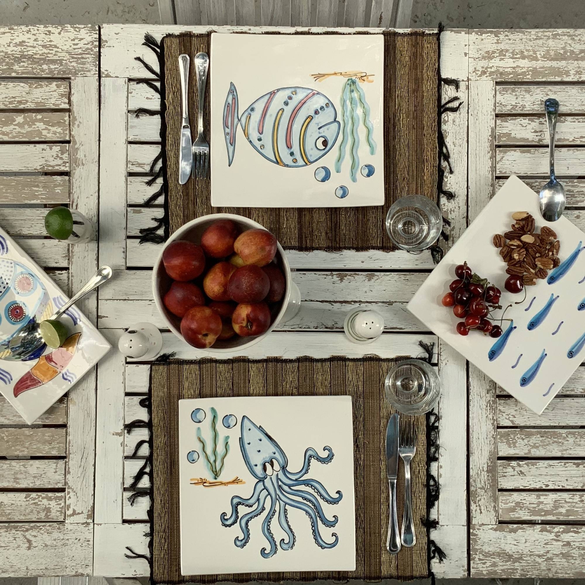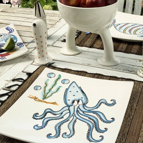 Il piatto piano polipo è perfetto per ravvivare la tua tavola e renderla super divertente, è un piatto da portata in ceramica di Caltagirone interamente fatto a mano dal design moderno. Puoi scegliere tra tante colorazioni e motivi particolari mescolando i piatti e creando una tavola coloratissima. Disegnato da Andrea Branciforti per Improntabarre.