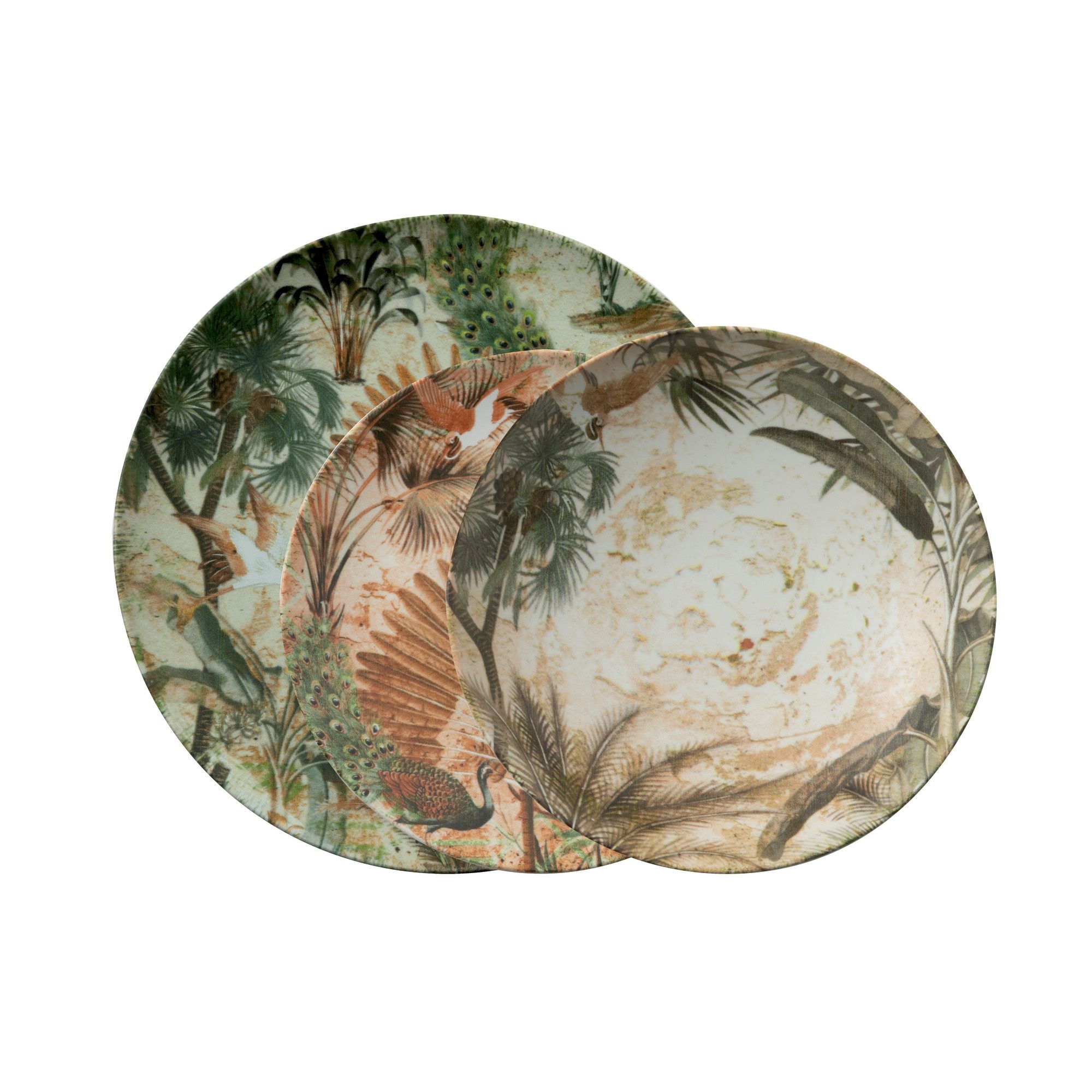Dimensioni: Piatto fondo diametro 27,5 cm, Piatto piano diametro 22 cm, Piatto frutta diametro 20 cm