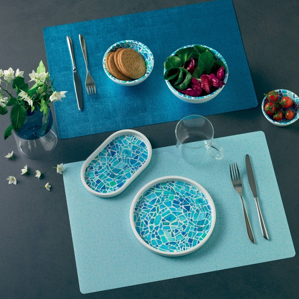 Il set di 4 piatti Mosaic, con diametro di 14 cm, incarna perfettamente l'essenza del design contemporaneo, realizzato in melamina, materiale apprezzato perché rende i piatti estremamente leggeri e allo stesso tempo resistenti, e le caratteristiche estetiche ricordano gli articoli in porcellana. Ha uno stile unico, delle decorazioni immortali che si ispirano all’immersione in acque limpide dalle molteplici colorazioni e sfumature: dal blu, al verde smeraldo ai toni turchesi, creando un’atmosfera cristallina dell’oceano. Infatti, questo set Mosaic è ideale per la ristorazione a bordo piscina, per presentare pasti leggeri sia all’interno che all’esterno di ambienti domestici o commerciali, permettendo di creare mise en place scenografiche. Il set di 4 piatti Mosaic non è solo un oggetto per uso quotidiano, ma un vero gioiello da collezione, ideale per chi desidera combinare l'arte della cucina con quella della tavola.