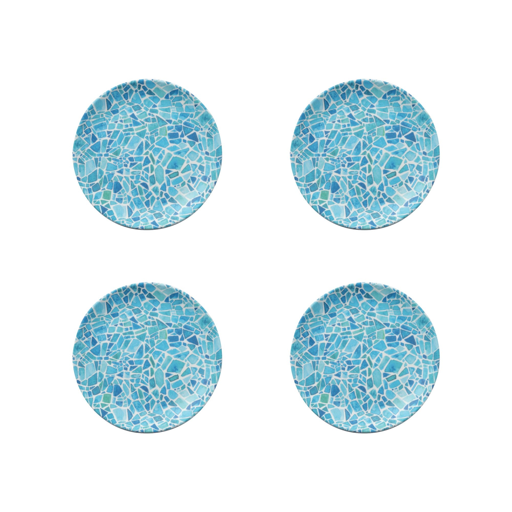 Il set di 4 piatti piani Mosaic, con diametro di 15,3 cm, incarna perfettamente l'essenza del design contemporaneo, realizzato in melamina, materiale apprezzato perché rende i piatti estremamente leggeri e allo stesso tempo resistenti, e le caratteristiche estetiche ricordano gli articoli in porcellana. Ha uno stile unico, delle decorazioni immortali che si ispirano all’immersione in acque limpide dalle molteplici colorazioni e sfumature: dal blu, al verde smeraldo ai toni turchesi, creando un’atmosfera cristallina dell’oceano. Infatti, questo set Mosaic è ideale per la ristorazione a bordo piscina, per presentare pasti sia all’interno che all’esterno di ambienti domestici o commerciali, permettendo di creare mise en place scenografiche. Il set di 4 piatti piani Mosaic non è solo un oggetto per uso quotidiano, ma un vero gioiello da collezione, ideale per chi desidera combinare l'arte della cucina con quella della tavola.