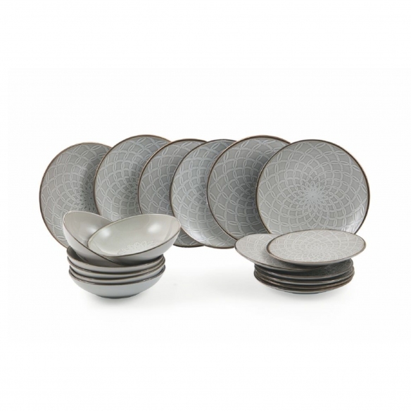 Servizio 18 piatti Baku realizzati in gres. Il servizio comprende: