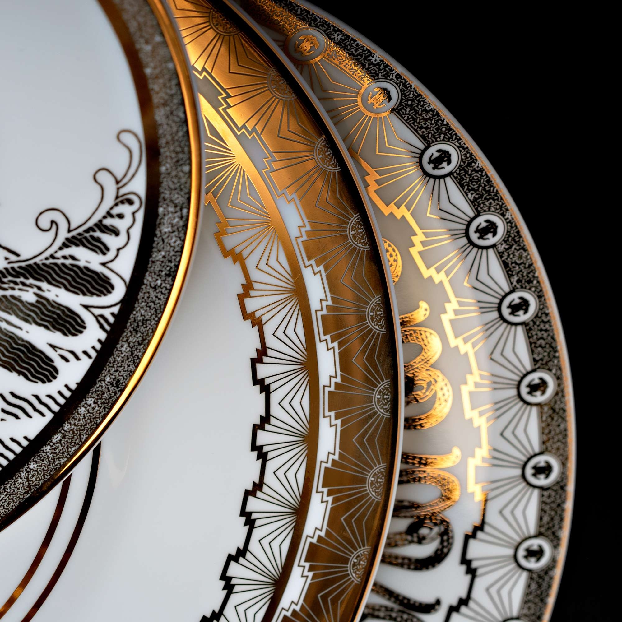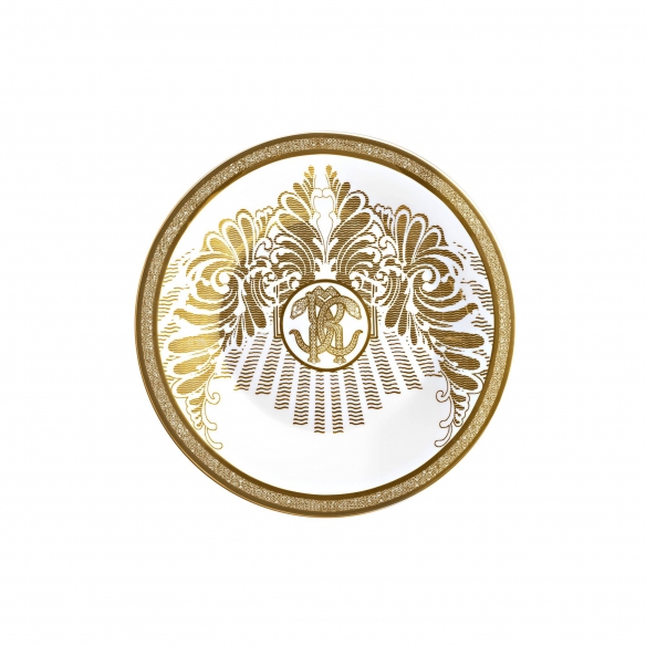 Linea che comprende piatti in bianco e oro, caratterizzati dallo stile unico e dalla prestigiosa firma Roberto Cavalli.