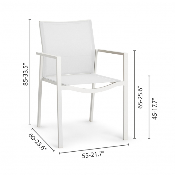 La poltrona da pranzo Alexa incorpora materiali di alta qualità, come l'alluminio e il tessuto Textilene (affidabile per i mobili da giardino), che garantiscono resistenza ai cambiamenti climatici e un comfort prolungato. Alexa, grazie alla sua struttura in alluminio resistente e leggera, si rivela un'ottima soluzione per chi è alla ricerca di una poltrona da pranzo con la massima durabilità e facile da spostare. La poltrona da pranzo Alexa è disponibile in tre bellissime colorazioni e ha un design semplice con linee pulite e minimaliste, perfetto per qualsiasi ambiente esterno come un terrazzo o in giardino, aggiungendo quel tocco di eleganza agli spazi vuoti. Il tessuto Textilene è stato selezionato per essere resistente ai raggi UV, alla pioggia e all'umidità, mantenendo il colore e la forma intatti nel tempo. Inoltre, la poltrona outdoor è perfettamente impilabile, perfetta per luoghi affollati come hotel o ristoranti. Alexa diventa una scelta privilegiata per chi desidera elevare l'esperienza del proprio spazio esterno; la poltrona da pranzo Alexa promette di soddisfare tutte le esigenze di comfort degli utenti.