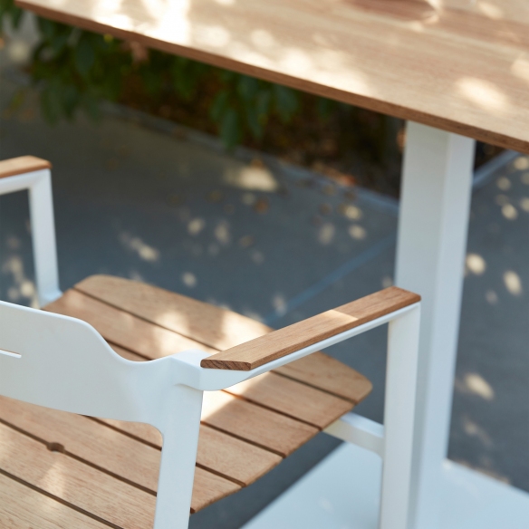 La poltrona da pranzo Icon di Diphano è stata realizzata meticolosamente con materiali di altissimo livello quali alluminio, che regala una struttura robusta e leggera allo stesso tempo, in grado di facilitare gli spostamenti, e il legno pregiato Teak, che mantiene la poltrona bella, elegante e reesistente ai vari cambiamenti climatici come pioggia, raggi UV o umidità. Questa combinanione alluminio e Teak rende la poltrona da pranzo calda e naturale ed è abbinabile ai tavoli da pranzo con piano in Teak. Disponibile in quattro splendide colorazioni, la poltrona da pranzo outdoor Icon è progettata per completare qualsiasi spazio esterno, che sia un giardino con la piscina, un terrazzino con lo stile moderno, Icon sposa perfettamente tutti gli stili e decori. Ogni aspetto di questa poltrona da pranzo per esterni è stato curato nei minimi dettagli, dall'ergonomia dello schienale che supporta la postura rilassata ai braccioli che offrono stabilità e comfort aggiuntivo. Icon di Diphano è perfetta per leggere un libro, stare a tavola con gli amici e i parenti o godersi in serenità i suoni della natura. La poltrona da pranzo Icon è la perfetta combinazione tra funzionalità ed estetica.