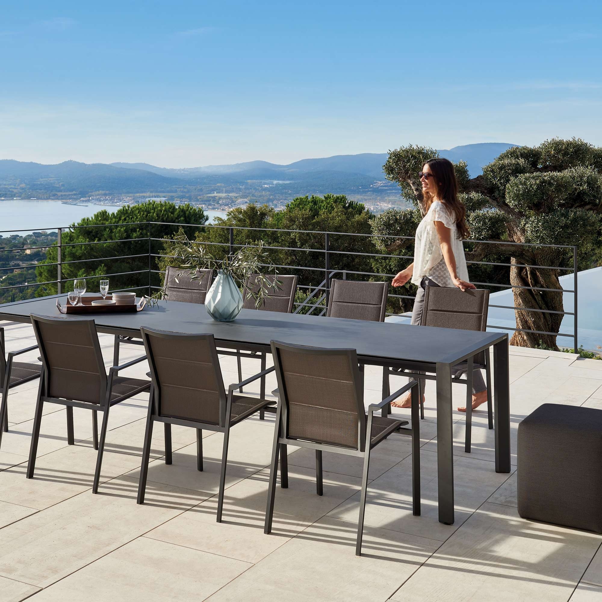 La poltrona da pranzo Selecta è stata reallizzata con materiali di altissimo livello, come l'alluminio leggero e resistente che rende la poltrona elegante, robusta e molto leggera per facilitare gli spostamenti, e il tessuto Batyline che protegge la poltrona da acqua, raggi UV, umidità. Questa poltrona da pranzo outdoor è un'espressione di lusso e raffinatezza, e può avere tre diverse combinazioni bellissime, per adattarsi al meglio con qualsiasi stile di decoro e arredamento, dal più classico a quello più moderno. La seduta di Selecta è stata progettata per offrire il massimo del comfort: è spaziosa e accogliente, spesso accompagnata da morbidi cuscini spessi e resistenti ai vari agenti atmosferici. La poltrona da pranzo Selecta è una perfetta combinazione tra lusso e funzionalità; che si tratti di godere di una tranquilla mattinata con caffè in giardino, o di ospitare amici e parenti per un pomeriggio in compagnia all'aperto, Selecta eleva ogni momento di relax, con una qualità senza compromessi.