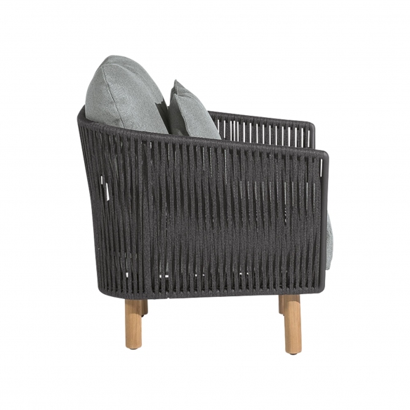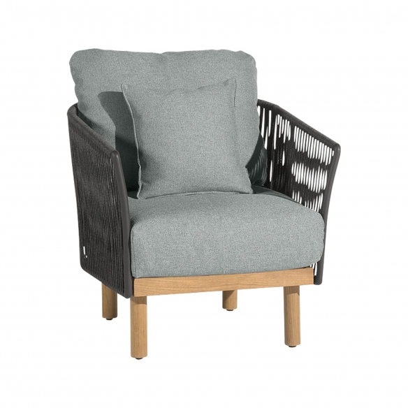 La poltrona Newport con cuscini ha una struttura resistente in alluminio, con cinghie intrecciate e legno Teak che insieme creano un'atmosfera lussuosa per qualsiasi ambiente, sia in contesti di design contemporaneo, che in ambienti esterni tradizionali, senza perdere l'identità raffinata. La poltrona Newport è personalizzabile in quattro bellissime finiture e colorazioni, permettendo di trovare il giusto equilibrio con lo stile della tua casa. I morbidissimi cuscini sono realizzati per esterni, in grado di resistere ai raggi UV e ai diversi agenti atmosferici come caldo e umidità. Inoltre, i cuscini della poltrona Newport sono facilmente removibili per la manutenzione. La poltrona si impone come soluzione ottimale per chi cerca un pezzo di arredo in grado di fondere eleganza dei materiali e resistenza per affrontare la vita all'aperto, senza rinunciare al relax assoluto. Perditi nel comfort profondo e invitante della poltrona con cuscini Newport, un classico senza tempo che regala all'ambiente un oasi di pace e di benessere.