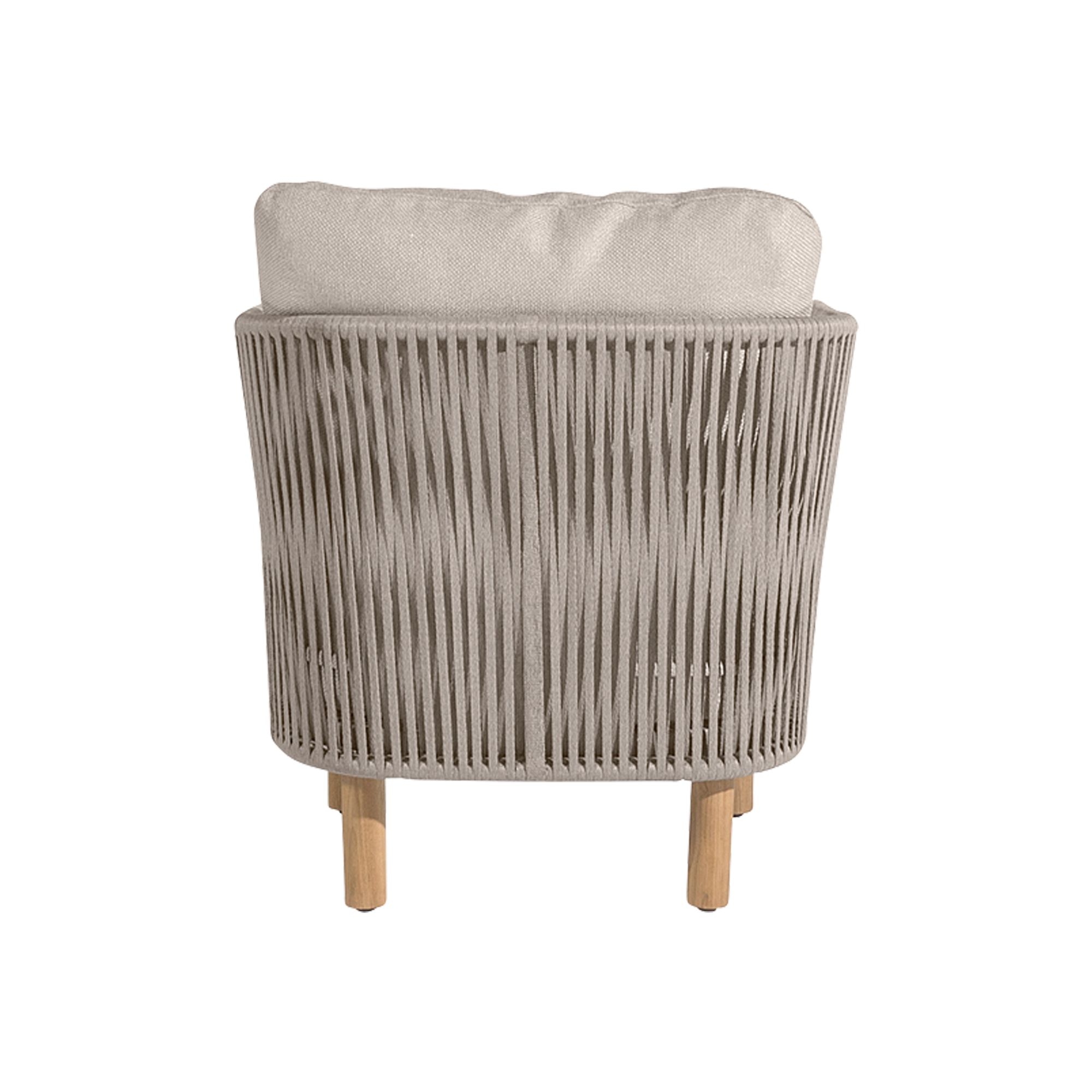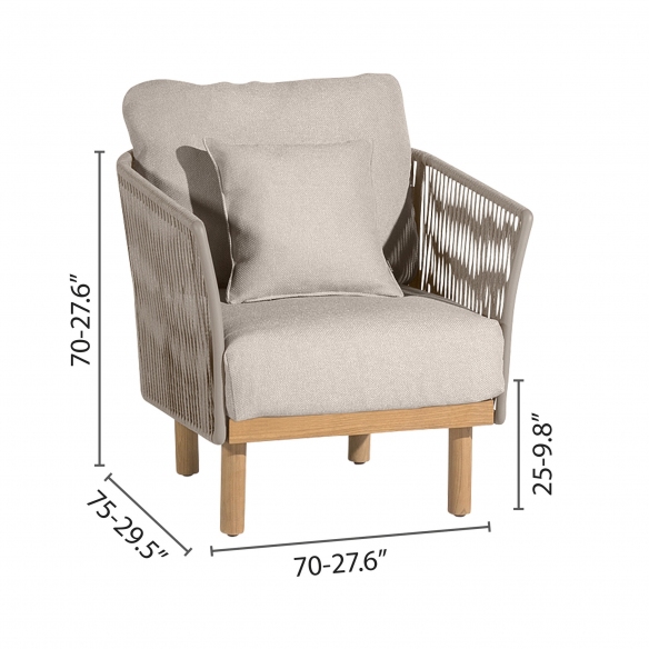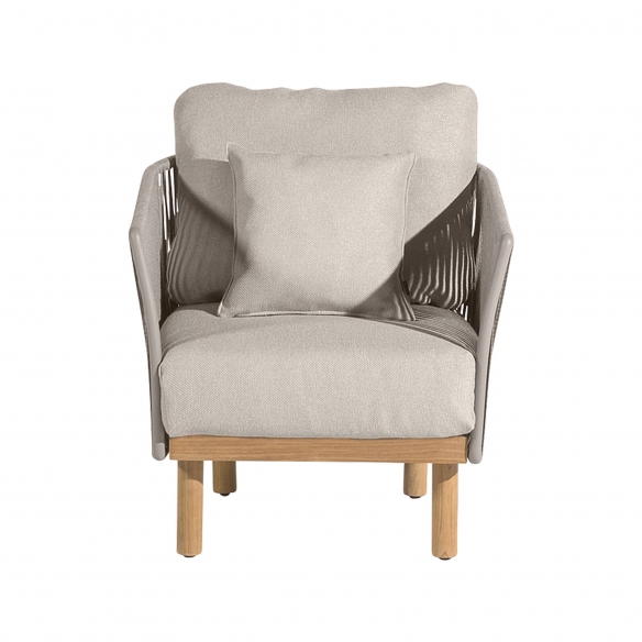 La poltrona Newport con cuscini ha una struttura resistente in alluminio, con cinghie intrecciate e legno Teak che insieme creano un'atmosfera lussuosa per qualsiasi ambiente, sia in contesti di design contemporaneo, che in ambienti esterni tradizionali, senza perdere l'identità raffinata. La poltrona Newport è personalizzabile in quattro bellissime finiture e colorazioni, permettendo di trovare il giusto equilibrio con lo stile della tua casa. I morbidissimi cuscini sono realizzati per esterni, in grado di resistere ai raggi UV e ai diversi agenti atmosferici come caldo e umidità. Inoltre, i cuscini della poltrona Newport sono facilmente removibili per la manutenzione. La poltrona si impone come soluzione ottimale per chi cerca un pezzo di arredo in grado di fondere eleganza dei materiali e resistenza per affrontare la vita all'aperto, senza rinunciare al relax assoluto. Perditi nel comfort profondo e invitante della poltrona con cuscini Newport, un classico senza tempo che regala all'ambiente un oasi di pace e di benessere.