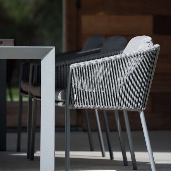 La poltrona da pranzo Omer, con cuscini integrati, ha una robusta struttura in alluminio che promette durabilità e facile manutenzione. La poltrona da pranzo outdoor è disponibile in due bellissime colorazioni, in grado di integrarsi armoniosamente in ogni contesto, dal più classico del terrazzo al più moderno del giardino con piscina. I morbidissimi cuscini sono stati realizzati in tessuto di alta qualità che invitano al relax e al comfort. La poltrona da pranzo Omer è perfetta per rendere la tua cucina o il tuo giardino una vera e propria galleria d'arte. Grazie al suo design particolare e irresistibile, Omer è una scelta ideale per chi cerca stile, comfort e funzionalità in un solo oggetto. La poltrona da pranzo Omer ha un design semplice ma raffinato ed è perfetto sia per interni che per esterni, grazie alla sua resistenza senza tempo. Questa poltrona ha la particolarità della finitura in corda, che crea un look intenso ed elegante. Non ti fare sfuggire questo gioiello, crea pure tu la tua oasi di relax con la poltrona da pranzo Omer con cuscini integrati.