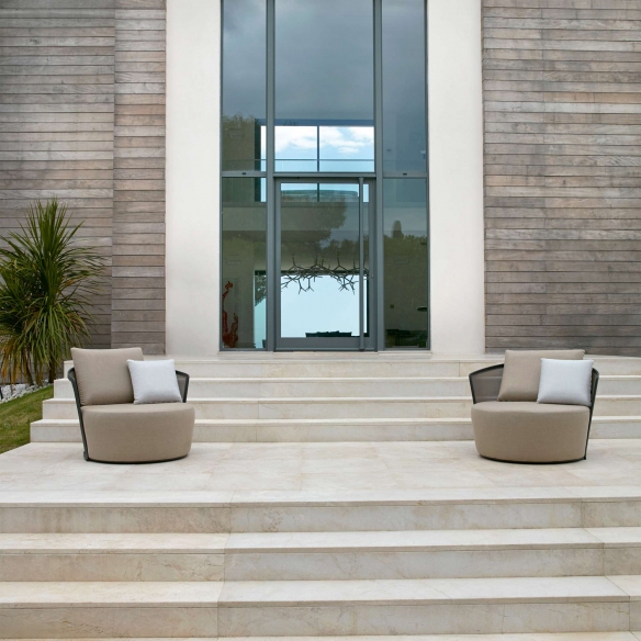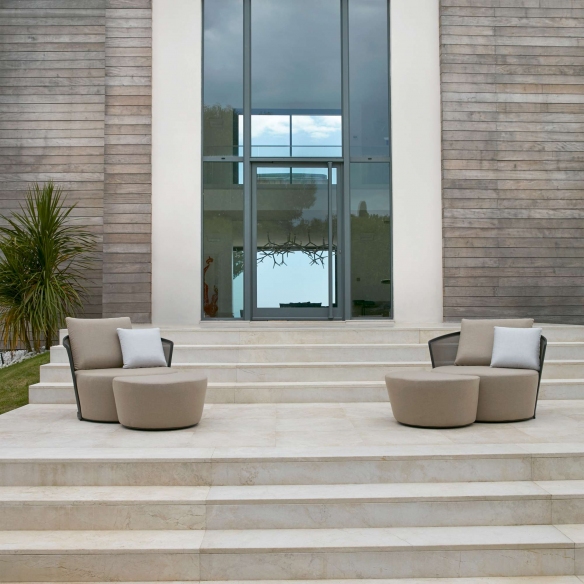 La poltrona con cuscini Cielo è un magnifico gioiello per esterni con struttura robusta in alluminio di alta qualità, in grado di rappresentare l'incarnazione perfetta del relax all'aperto. La poltrona Cielo è disponibile in due splendide colorazioni, e completerà la tua oasi di bellezza grazie al suo design accattivante e lussuoso, garantendo durabilità nel tempo e facile manutenzione. La parte posteriore di questa meravigliosa poltrona è realizzata in tessuto Batyline di altissima qualità, resistente anche ai raggi UV. I cuscini morbidissimi sono rivestiti in tessuti che resistono ai vari agenti atmosferici, sole e umidità, ideali per l'uso esterno. Questa poltrona outdoor è perfetta per qualsiasi spazio esterno, dal giardino alla terrazza, regalando un angolo di stile e comfort alla tua casa. La poltrona con cuscini Cielo ha delle linee piacevoli e pulite, e una configurazione che invita a distendersi e a godere della tranquillità dell'ambiente circostante. Questa poltrona non è solo un pezzo di mobiliare, ma una vera e propria oasi di benessere che trasforma qualsiasi angolo esterno della tua casa in un rifugio accogliente e stiloso.