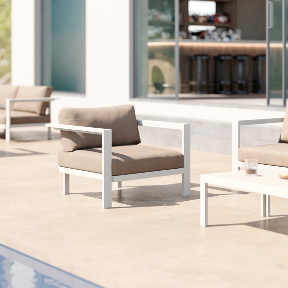 La poltrona Cubic, con cuscini integrati, è un meraviglioso capolavoro realizzato da Diphano con struttura robusta in alluminio e cuscini rivestiti in tessuto di alta qualità capaci di resistere ai vari agenti atmosferici, dal sole caldo, alla pioggia incessante. Cubic è personalizzabile in sei diverse colorazioni, e grazie a questo è versatile e abbinabile a qualsiasi stile della tua casa. La poltrona Cubic per esterni si distingue per il suo design minimalista e moderno, che lo rende una scelta ottima per chi cerca di aggiungere un po' di eleganza contemporanea al proprio spazio esterno o interno. Caratteristica ineguagliabile della poltrona Cubic è il fissaggio con velcro; in questo modo i cuscini si mantengono in posizione, ma allo stesso tempo sono facilmente removibili per favorire la manutenzione e la pulizia della poltrona outdoor. Inoltre, la sua versatilità permette di posizionarlo sia in ambienti esterni come un terrazzo o un giardino, che in ambienti interni come una sala da pranzo o un salotto, grazie ai suoi materiali di alta qualità che possono resistere ai cambiamenti climatici. Oltre al design e alle varie funzionalità, Cubic è all'insegna della sostenibilità dell'ambiente, con materiali ecocompatibili che rispettano la natura senza togliere nulla all'aspetto estetico. Scegli anche tu la poltrona Cubic con cuscini integrati e non ti pentirai.