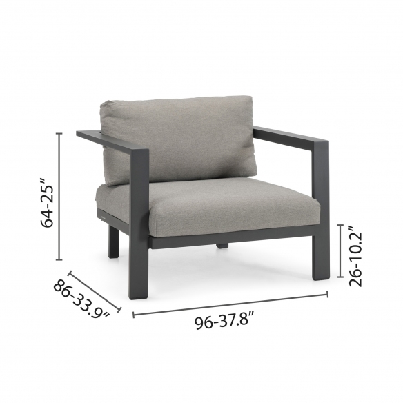 Dimensioni: Lunghezza 96 cm, Profondità 86 cm, Altezza 63 cm, Altezza sedile 25,5 cm