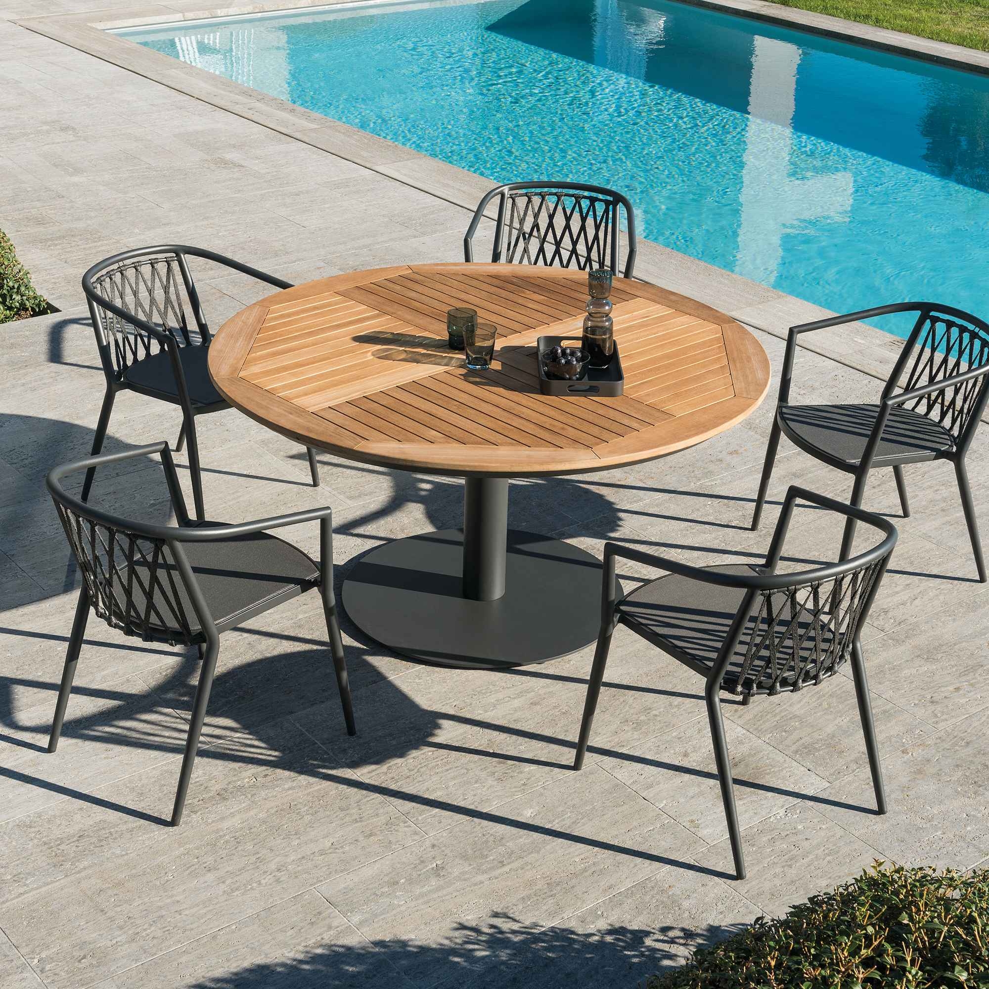 La poltrona da pranzo Diamond ha una struttura in alluminio di altissima qualità, realizzato per resistere agli agenti atmosferici esterni, come caldo e umidità, e garantendo una lunga durabilità e bellezza invariata nel tempo. La poltrona da pranzo Diamond outdoor è disponibile in quattro splendide colorazioni; ciò la rende versatile per qualsiasi tipo di esterno, che sia una piccola terrazza, un ampio giardino o un balconcino. Questa elegante poltrona da pranzo per esterni è il frutto dell'innovazione nel campo dell'arredamento outdoor, abbinando funzionalità ed estetica. Il motivo della finitura in corde trasforma questa poltrona da pranzo in un vero e proprio gioiello con un look aggraziato. I braccioli di questo meraviglioso gioiello sono stati progettati per rendere Diamond un'oasi di comfort e per offrire il massimo supporto e relax. Diamond è l'apoteosi dell'arredamento che definisce lo stile leggero e giocoso di questa collezione. Scegliere questa poltrona da pranzo outdoor significa abbracciare un'estetica lussuosa e un comfort senza tempo per il tuo terrazzo, trasformandolo in un angolo di paradiso personale.