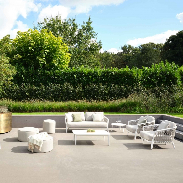 La poltrona Diamond, con cuscini integrati, ha una struttura in alluminio di altissima qualità, realizzato per resistere agli agenti atmosferici esterni, come caldo e umidità, e garantendo una lunga durabilità e bellezza invariata nel tempo. La poltrona Diamond outdoor è disponibile in due splendide colorazioni; ciò la rende versatile per qualsiasi tipo di esterno, che sia una piccola terrazza, un ampio giardino o un balconcino. Questa elegante poltrona per esterni è il frutto dell'innovazione nel campo dell'arredamento outdoor, abbinando funzionalità ed estetica. I cuscini della poltrona Diamond sono morbidi e spessi, e sono realizzati con tessuti capaci di resistere ai raggi UV, alla pioggia e ai cambiamenti climatici, assicurando sempre un aspetto impeccabile. I braccioli di questo meraviglioso gioiello sono stati progettati per rendere Diamond un'oasi di comfort e per offrire il massimo supporto e relax. Diamond è l'apoteosi dell'arredamento che definisce lo stile leggero e giocoso di questa collezione. Scegliere questa poltrona outdoor significa abbracciare un'estetica lussuosa e un comfort senza tempo per il tuo terrazzo, trasformandolo in un angolo di paradiso personale.