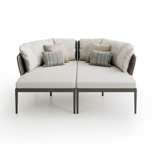 Dormeuse da esterno Dream 2.0 realizzata con base in alluminio verniciato, schienale in corda tonda intrecciata a mano e cuscini della seduta e dello schienale rivestiti in tessuto outdoor. Disponibile in vari colori e tessuti, la dormeuse outdoor rappresenta l'eccellenza nel design outdoor, progettata per impreziosire con eleganza e stile ogni giardino o terrazza. Realizzata da Atmosphera Creative Lab, questa dormeuse unisce estetica sofisticata a performance di alta qualità. Caratterizzata da una base robusta in alluminio verniciato, resistente agli agenti atmosferici e facile da mantenere, la Dream 2.0 è disponibile in una gamma di colori alla moda, offrendo un'ampia personalizzazione per ogni gusto ed esigenza. Il dettaglio distintivo è lo schienale, finemente lavorato con corda tonda intrecciata a mano in fibra termoplastica acrilica melangiate, materiale che garantisce resistenza e bellezza durature. I cuscini, sia quello della seduta che dello schienale, sono rivestiti con tessuto outdoor di qualità superiore, progettati per resistere a pioggia e sole e per garantire massimo comfort. La loro imbottitura all'avanguardia contribuisce a mantenere la forma e il volume nel tempo, assicurando un'esperienza di relax superiore. La dormeuse da esterno Dream 2.0 è l'ideale per chi cerca un arredo da esterno che offra un'oasi di comfort senza compromettere l'eleganza. Scegli la Dream 2.0 per assicurarti un prodotto che valorizzi il tuo spazio aperto e sopravviva alle tendenze, mantenendosi sempre attuale e accogliente.