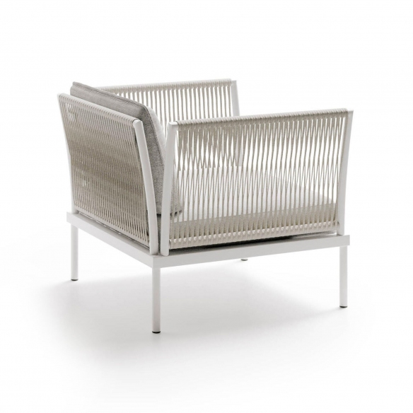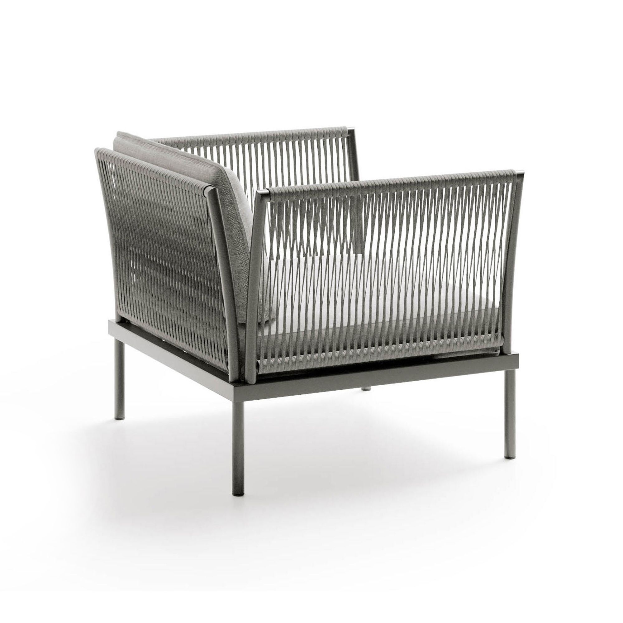 Poltrona da esterno Flash realizzata con struttura in alluminio verniciato epossidico per esterni, pannelli laterali in fibra termoplastica acrilica Teflon intrecciata a mano e cuscini della seduta e dello schienale rivestiti in tessuto outdoor. Disponibile in una vasta gamma di combinazioni di colore, la poltrona outdoor Flash rappresenta un connubio perfetto tra design raffinato e materiali di alta qualità, progettata per garantire comfort e durata nel tempo. Il Teflon, oltre ad essere idrorepellente e facile da pulire, offre un'elasticità e una morbidezza simili agli intrecci tessili, assicurando un comfort superiore senza rinunciare alla resistenza. Grazie alla sua capacità di resistere efficacemente ai raggi UV e alla sua rapidità nell'asciugarsi, la poltrona Flash è l'ideale per qualsiasi spazio esterno, dal giardino privato alla terrazza di un locale, garantendo un ambiente accogliente e stiloso. Perfetta per chi cerca una soluzione d'arredo all'esterno che sia allo stesso tempo elegante e funzionale, la poltrona Flash si adatta a contesti diversi, valorizzando lo spazio con un tocco di modernità. Che sia collocata da sola come punto focale o abbinata ad altri pezzi per creare un'area conversazione all'aperto, questa poltrona da esterno promette di trasformare ogni momento di relax in un'esperienza unica, circondati da bellezza e comfort. Scegliere la poltrona Flash significa fare una scelta di qualità, destinata a durare nel tempo e mantenere inalterato il proprio appeal estetico. Disegnata da Atmosphera Creative Lab.