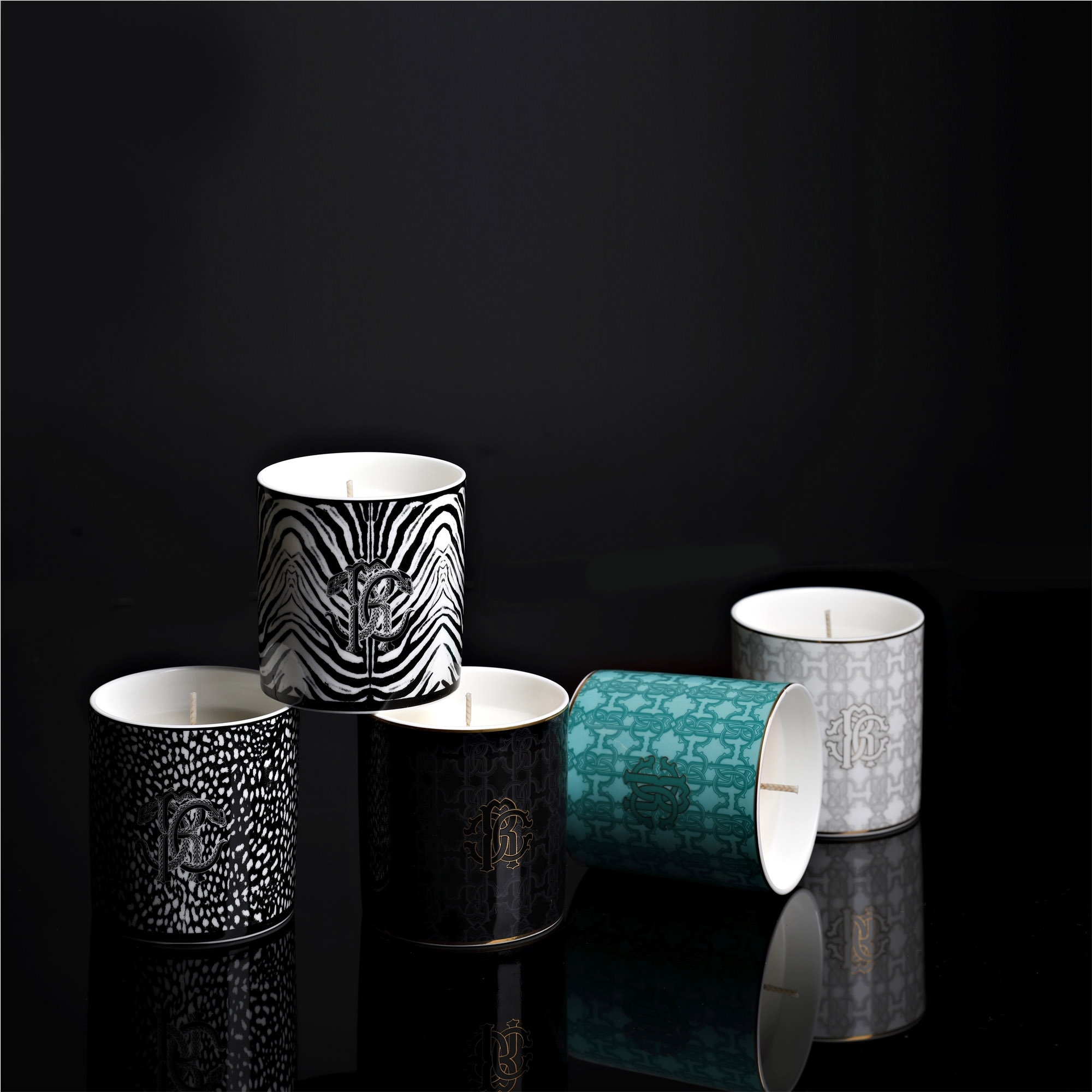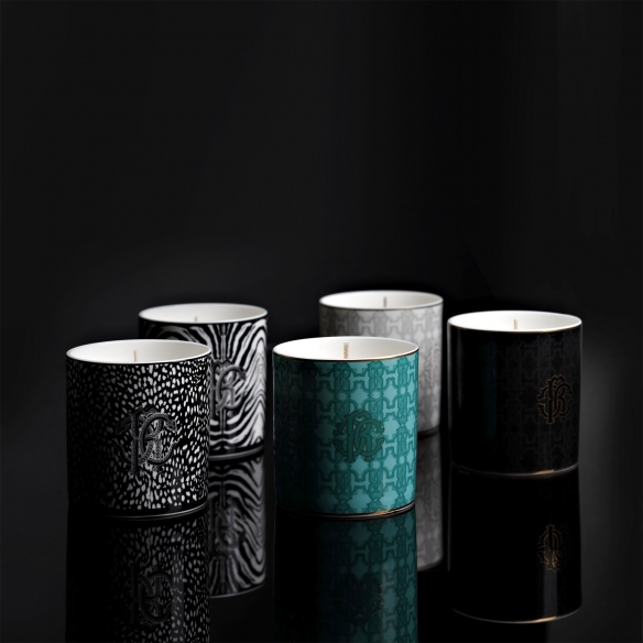 Roberto Cavalli Candela profumata Black Monogram Gold 270g. Ø 8,5 x 9 cm